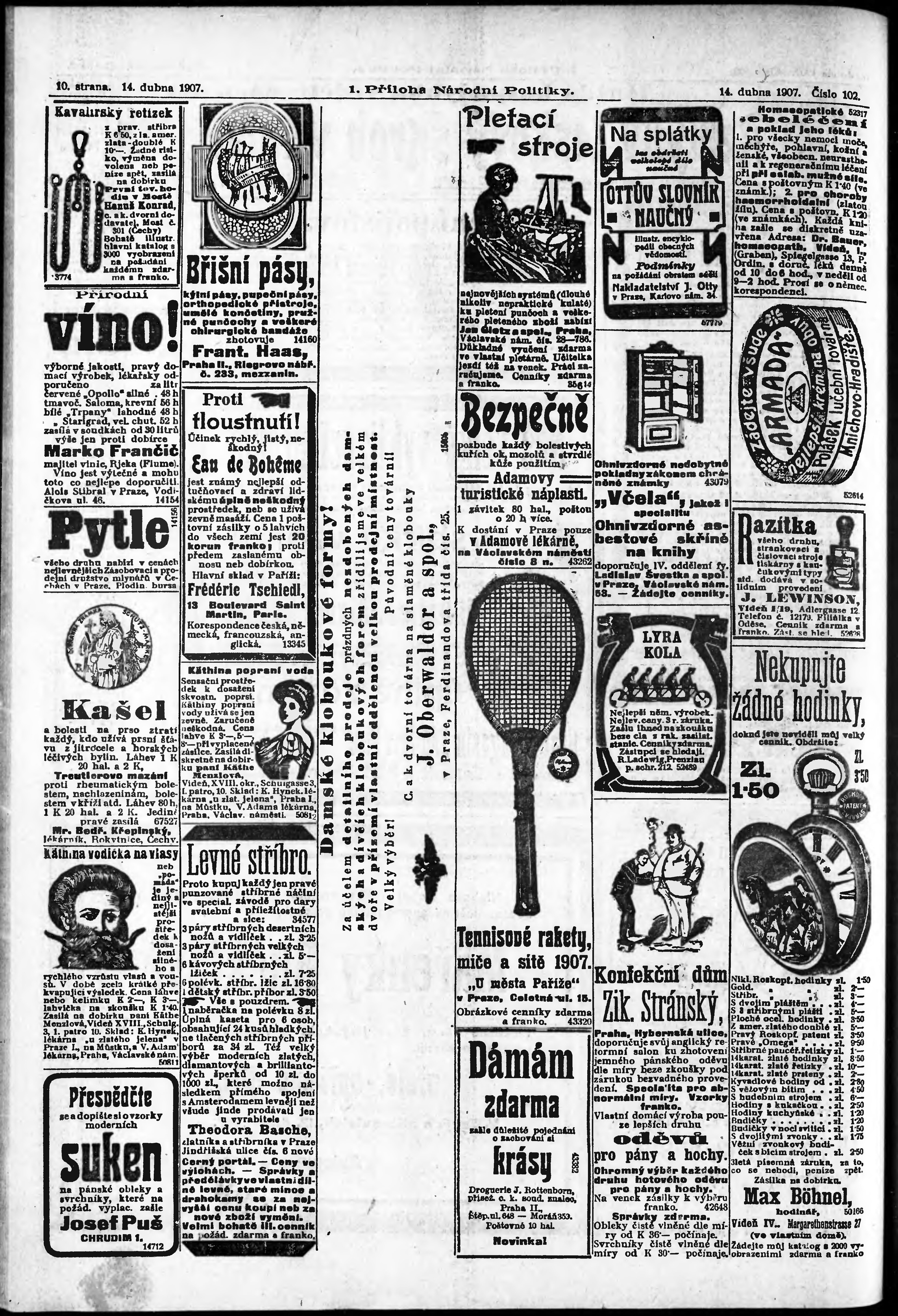 * Datum vydání výtisku: 14.4.1907 Číslo výtisku: 102 Typ výtisku: příloha Poznámky k výtisku: 1. příloha;