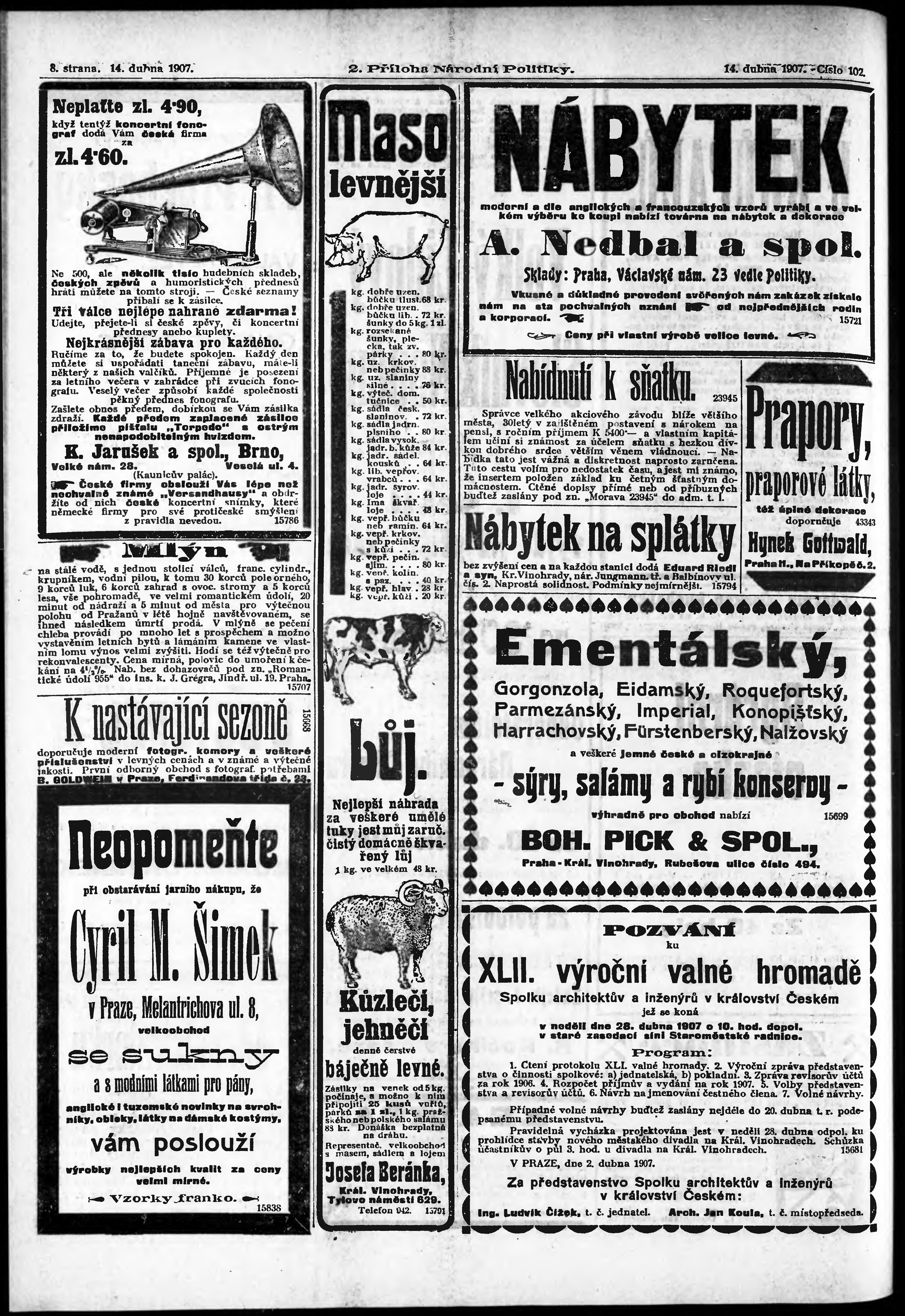 * Datum vydání výtisku: 14.4.1907 Číslo výtisku: 102 Typ výtisku: příloha Poznámky k výtisku: 2. příloha;