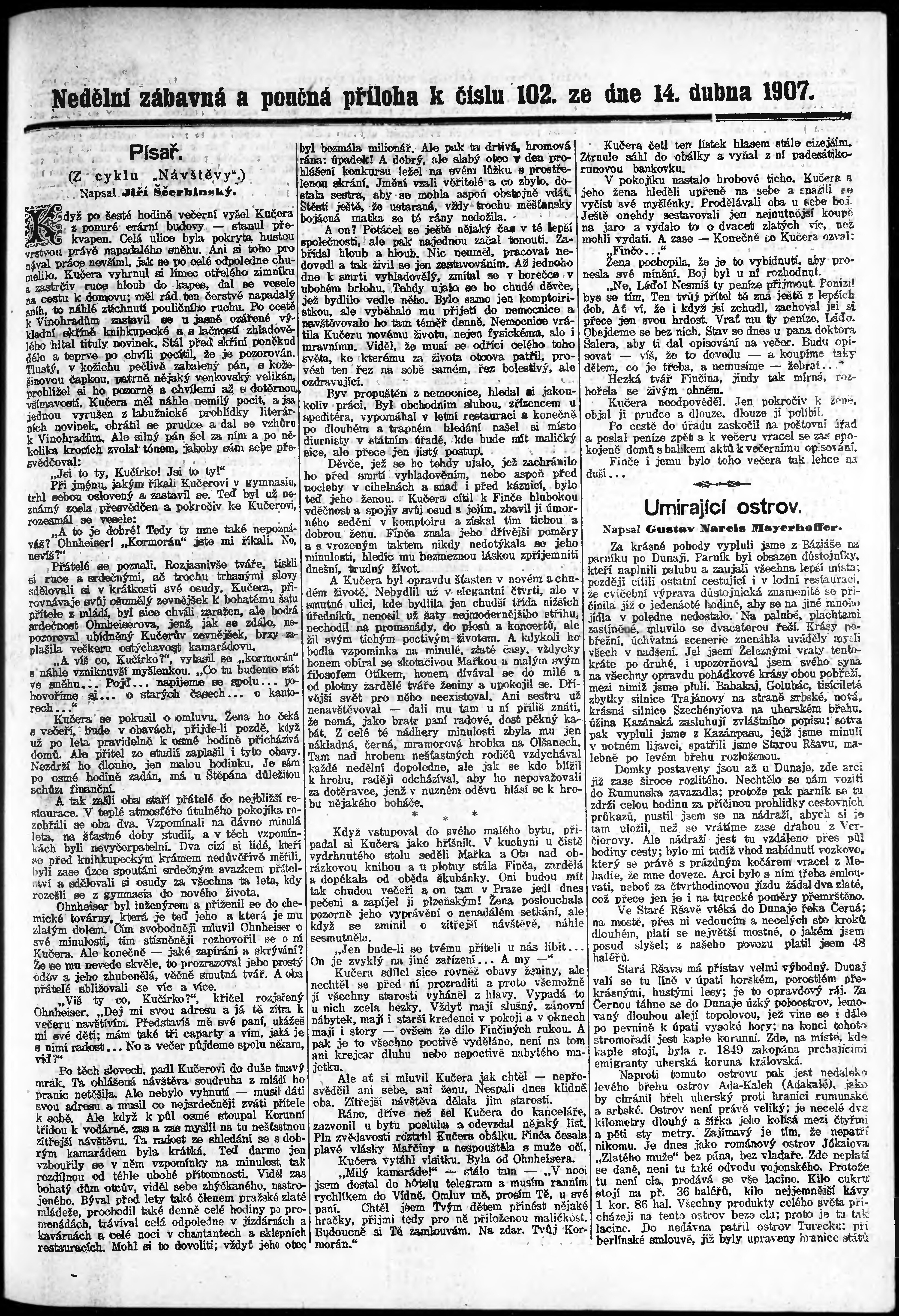 * Datum vydání výtisku: 14.4.1907 Číslo výtisku: 102 Typ výtisku: příloha