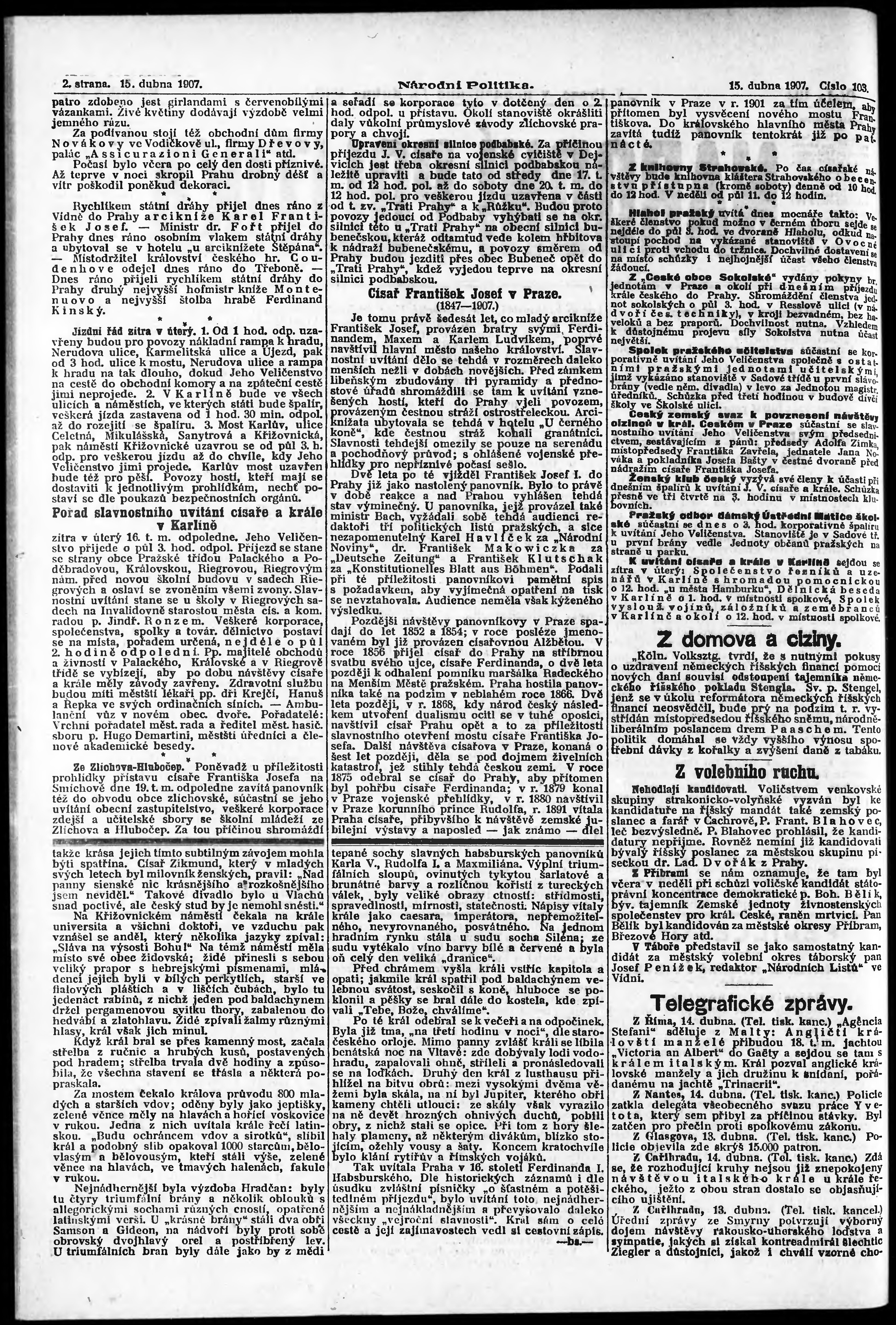 * Datum vydání výtisku: 15.4.1907 Číslo výtisku: 103 Poznámky k výtisku: ranní vydání;