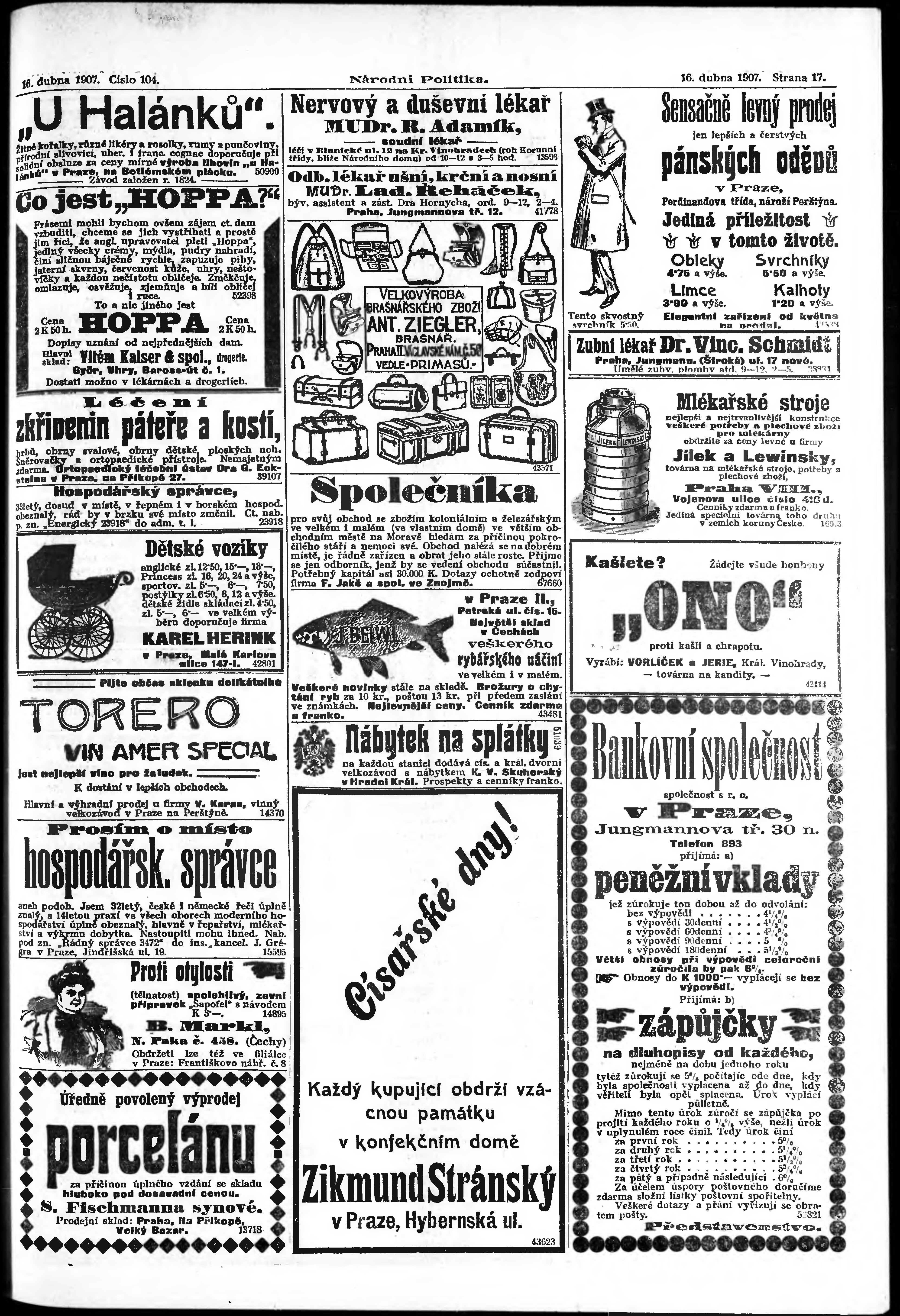 * Datum vydání výtisku: 16.4.1907 Číslo výtisku: 104 Poznámky k výtisku: ranní vydání;