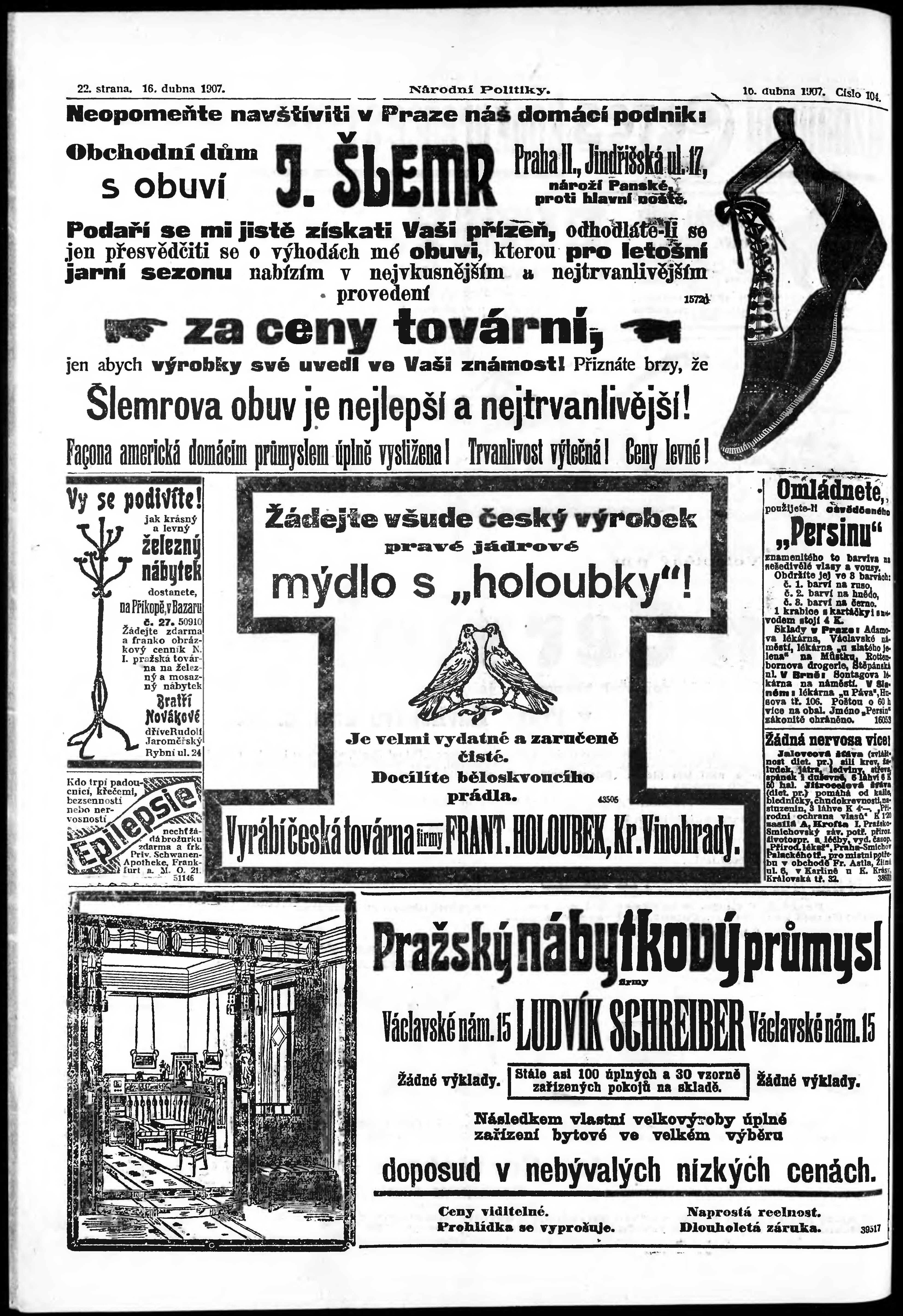 * Datum vydání výtisku: 16.4.1907 Číslo výtisku: 104 Poznámky k výtisku: ranní vydání;