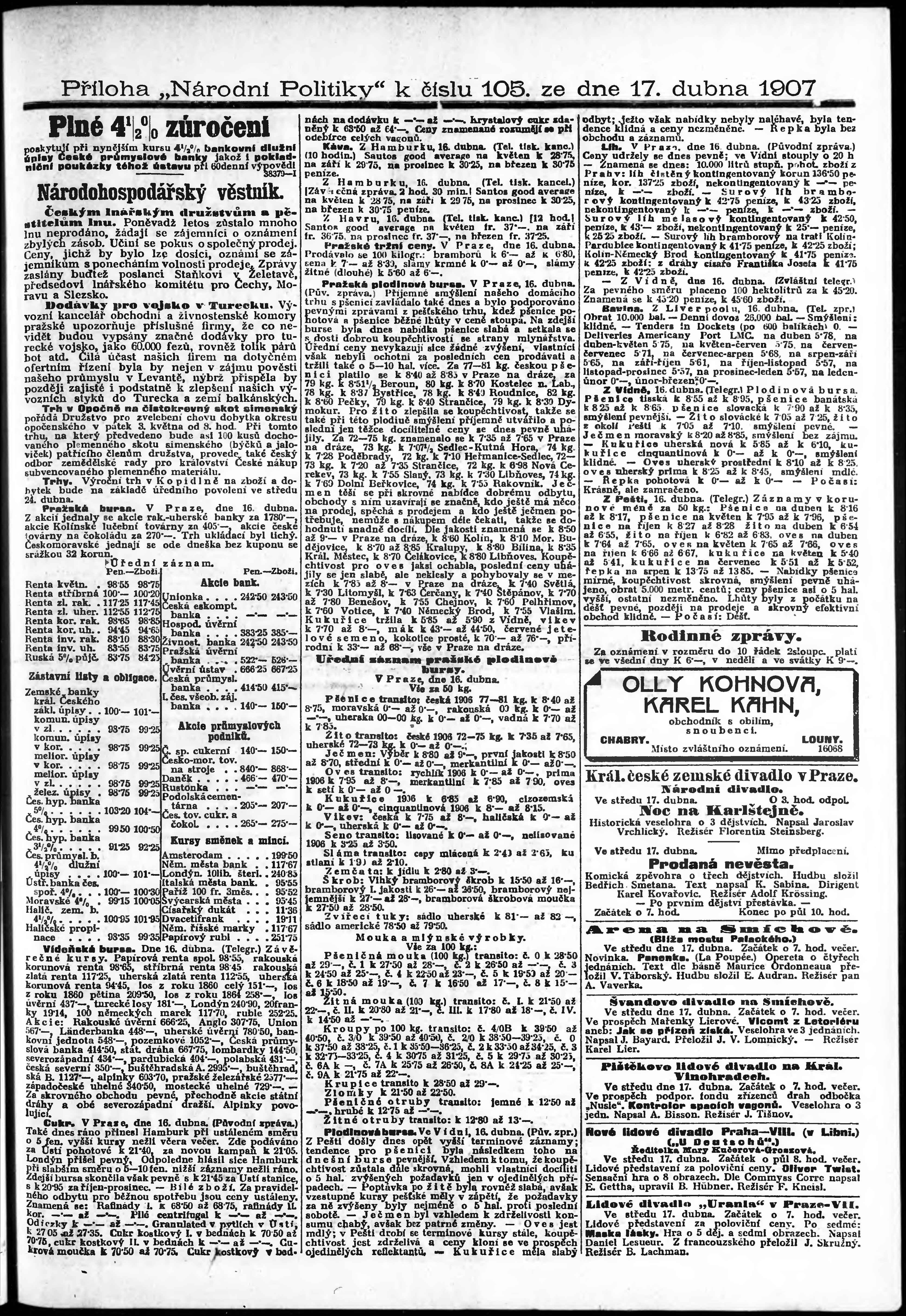 * Datum vydání výtisku: 17.4.1907 Číslo výtisku: 105 Typ výtisku: příloha