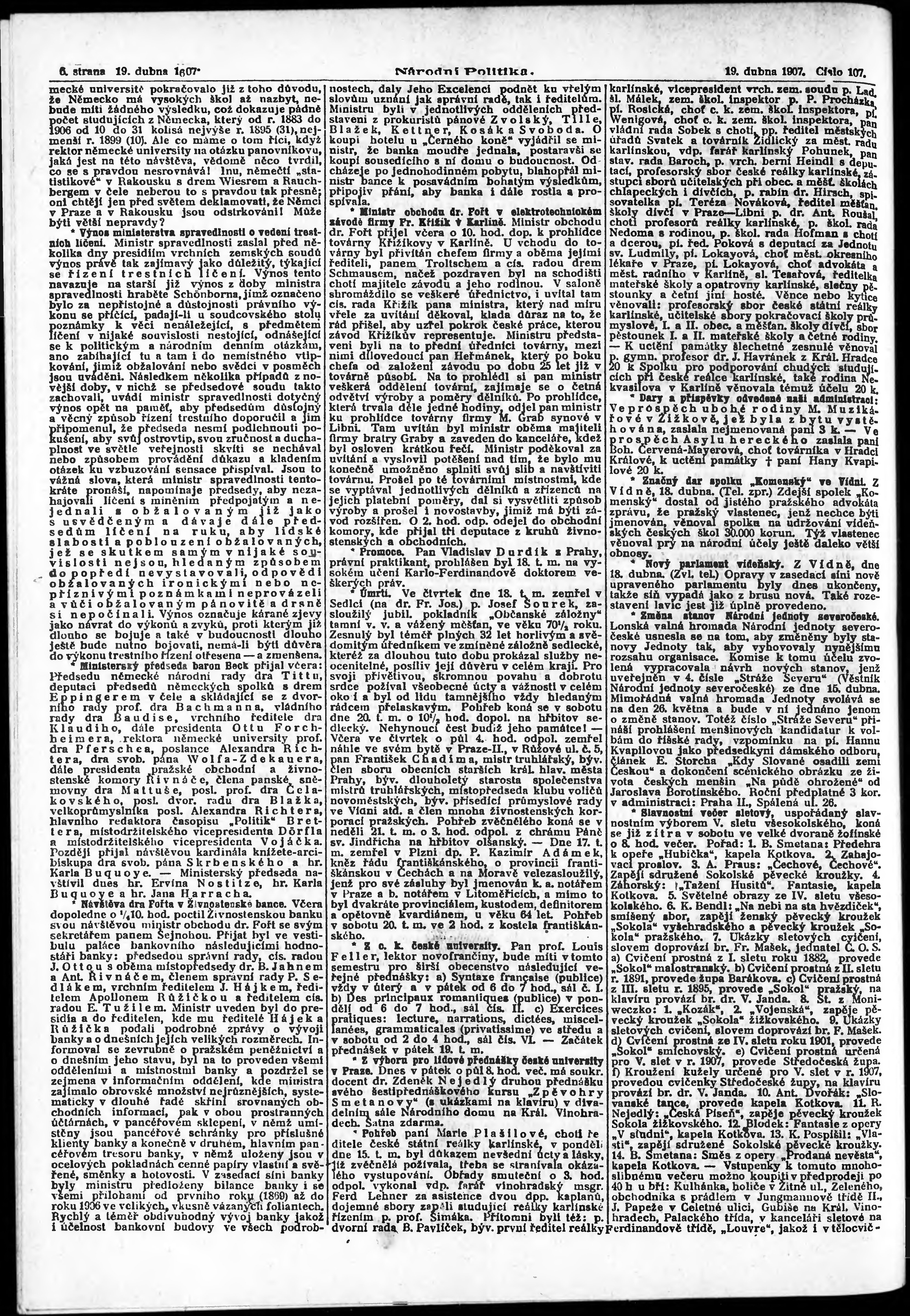 * Datum vydání výtisku: 19.4.1907 Číslo výtisku: 107 Poznámky k výtisku: ranní vydání;