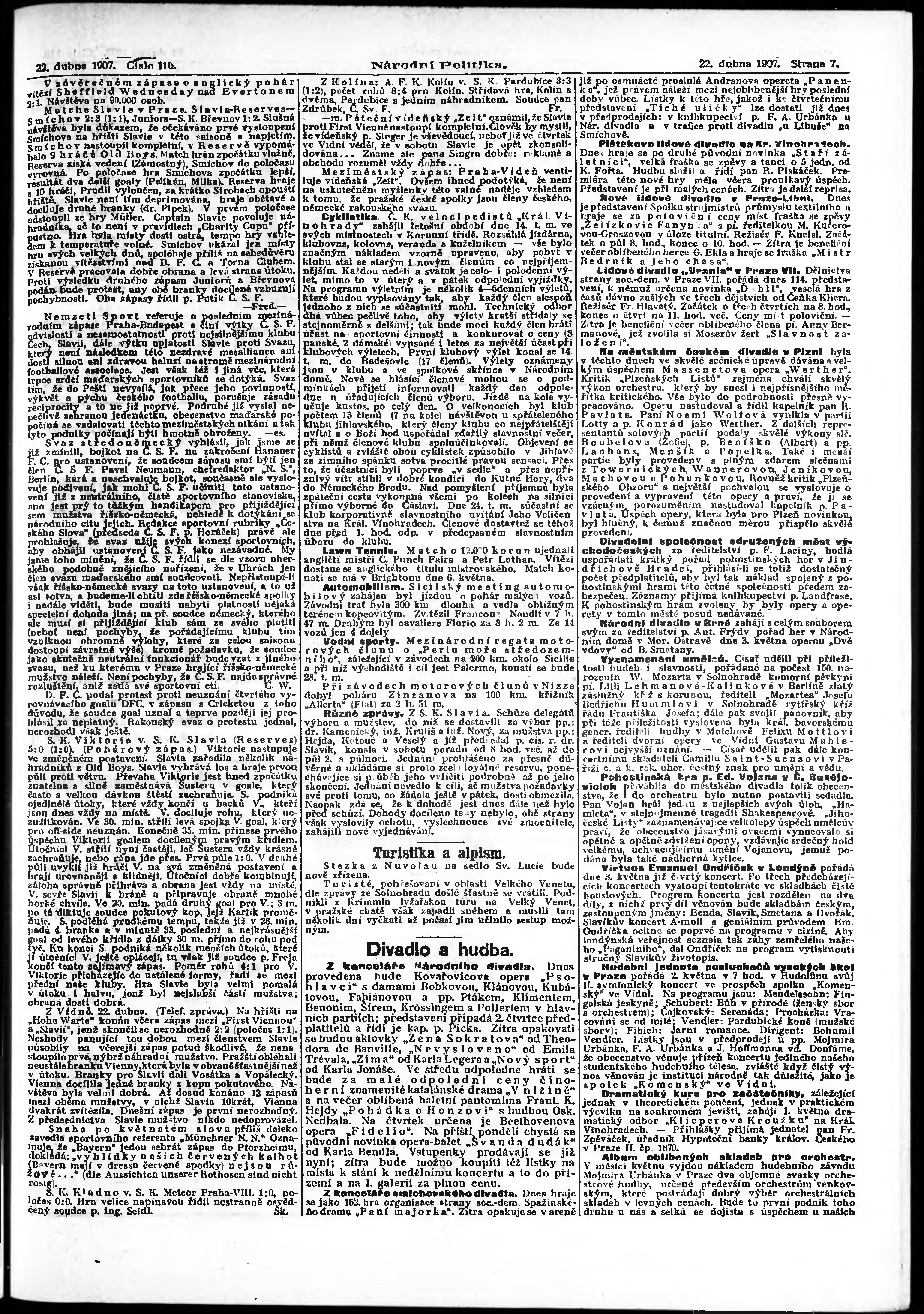 * Datum vydání výtisku: 22.4.1907 Číslo výtisku: 110 Poznámky k výtisku: ranní vydání;