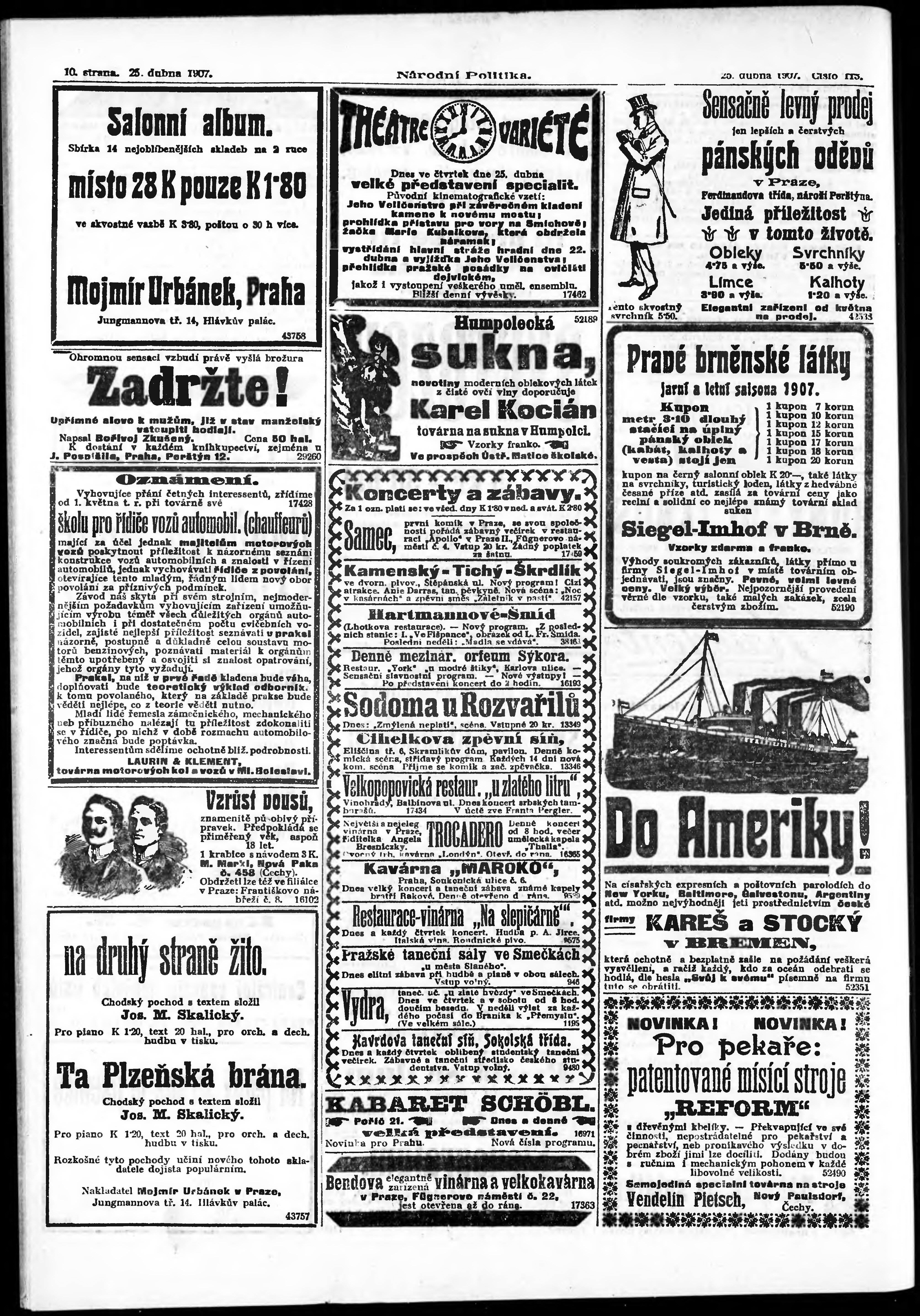 * Datum vydání výtisku: 25.4.1907 Číslo výtisku: 113 Poznámky k výtisku: ranní vydání;