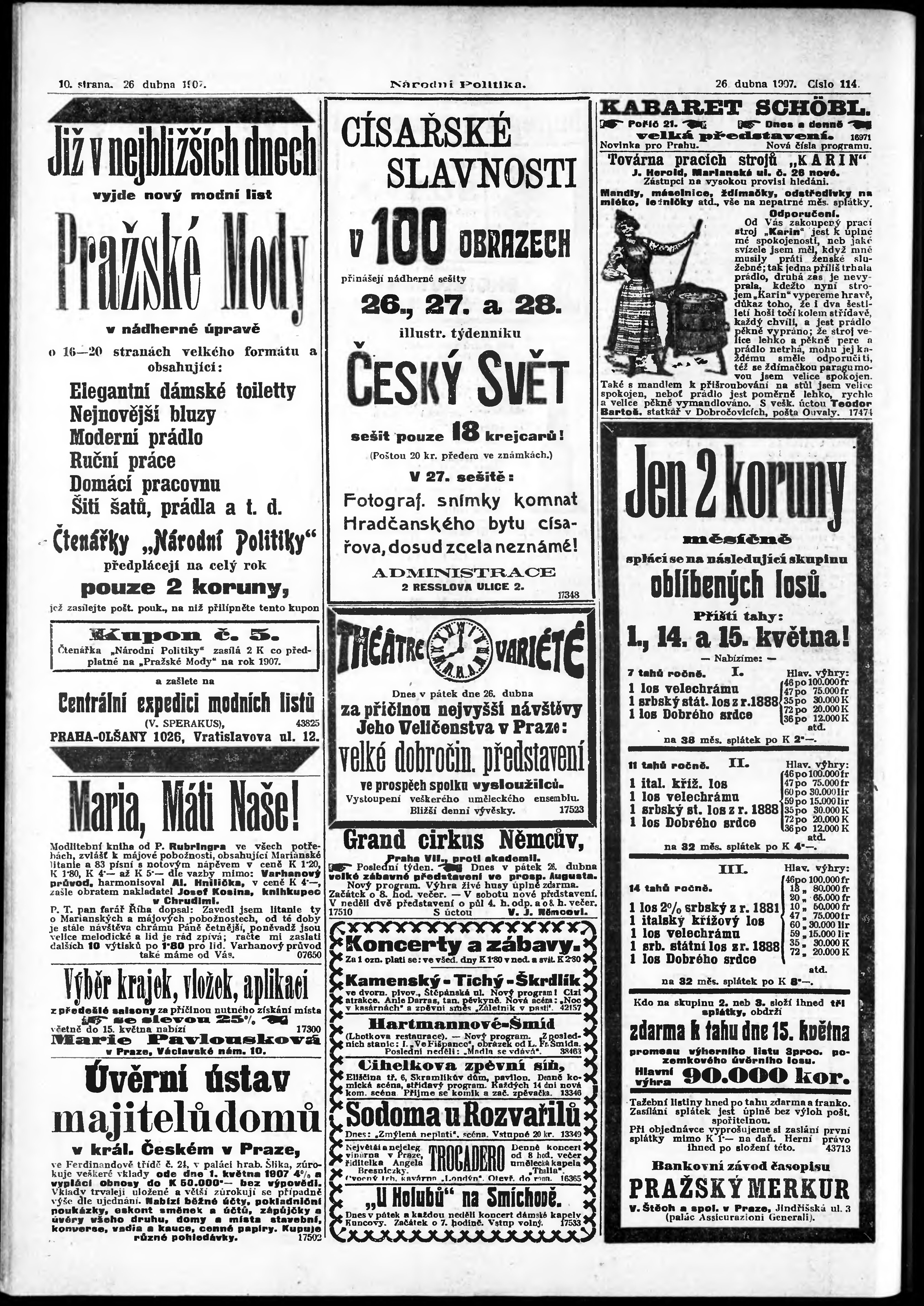 * Datum vydání výtisku: 26.4.1907 Číslo výtisku: 114 Poznámky k výtisku: ranní vydání;