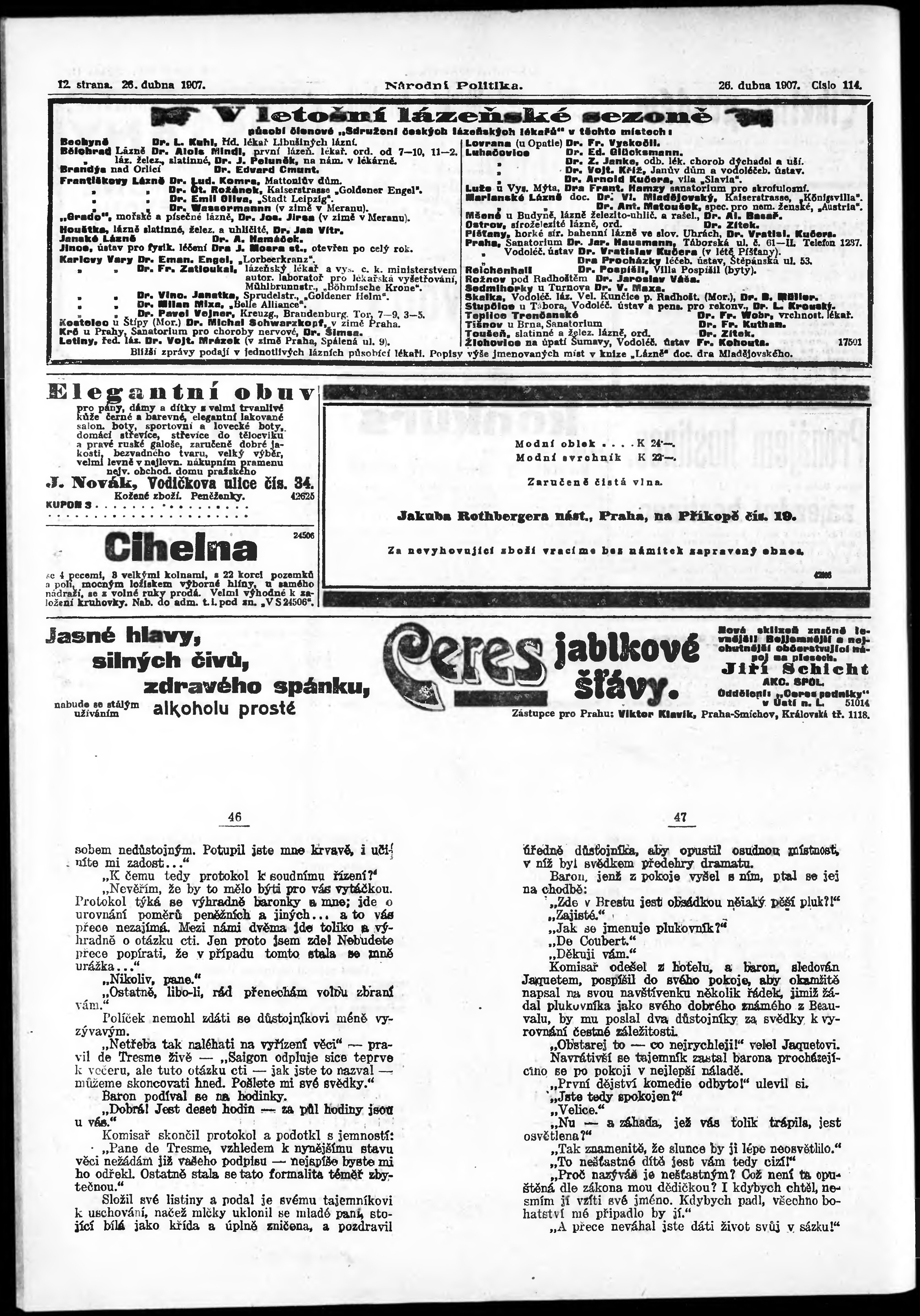 * Datum vydání výtisku: 26.4.1907 Číslo výtisku: 114 Poznámky k výtisku: ranní vydání;