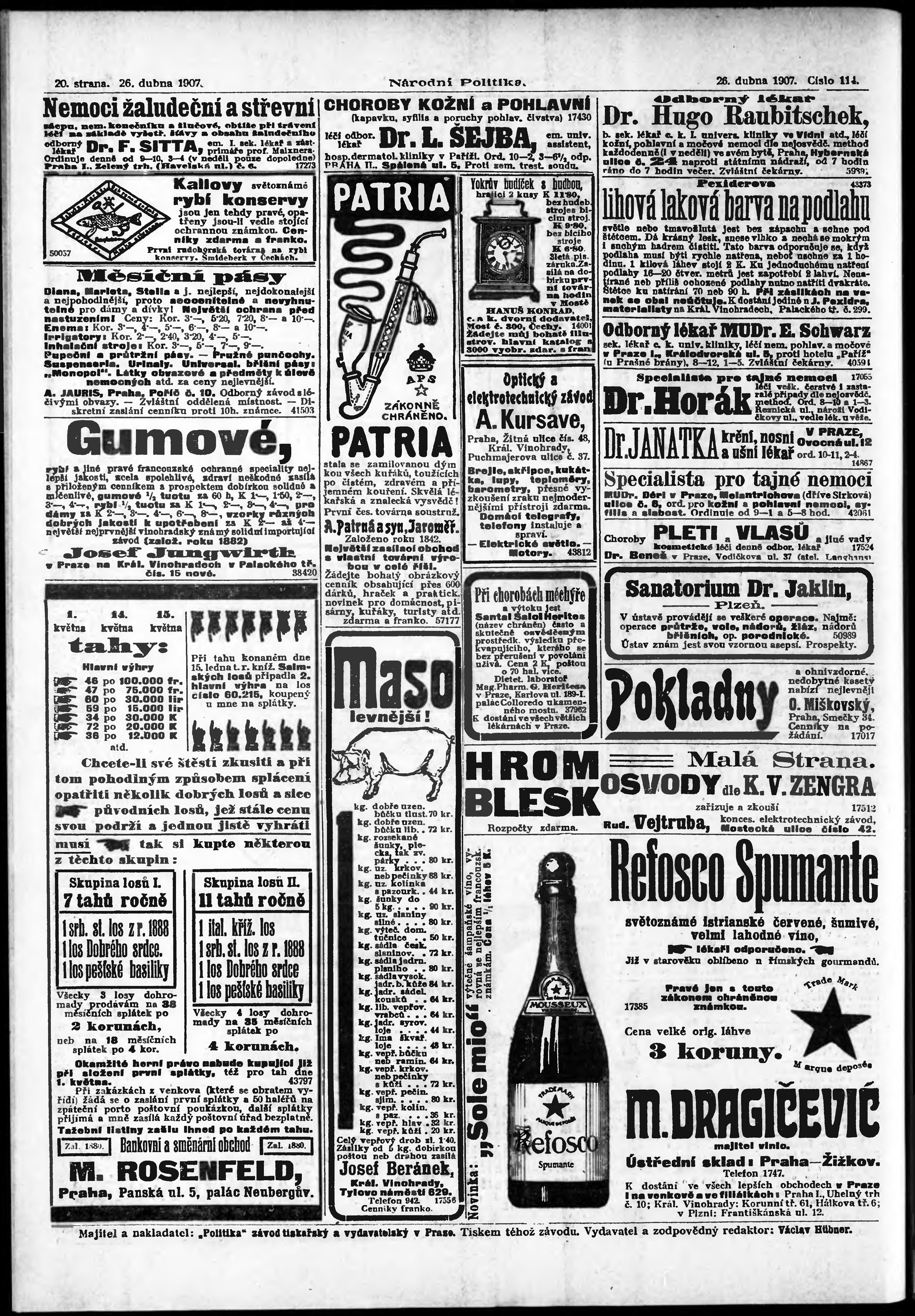 * Datum vydání výtisku: 26.4.1907 Číslo výtisku: 114 Poznámky k výtisku: ranní vydání;