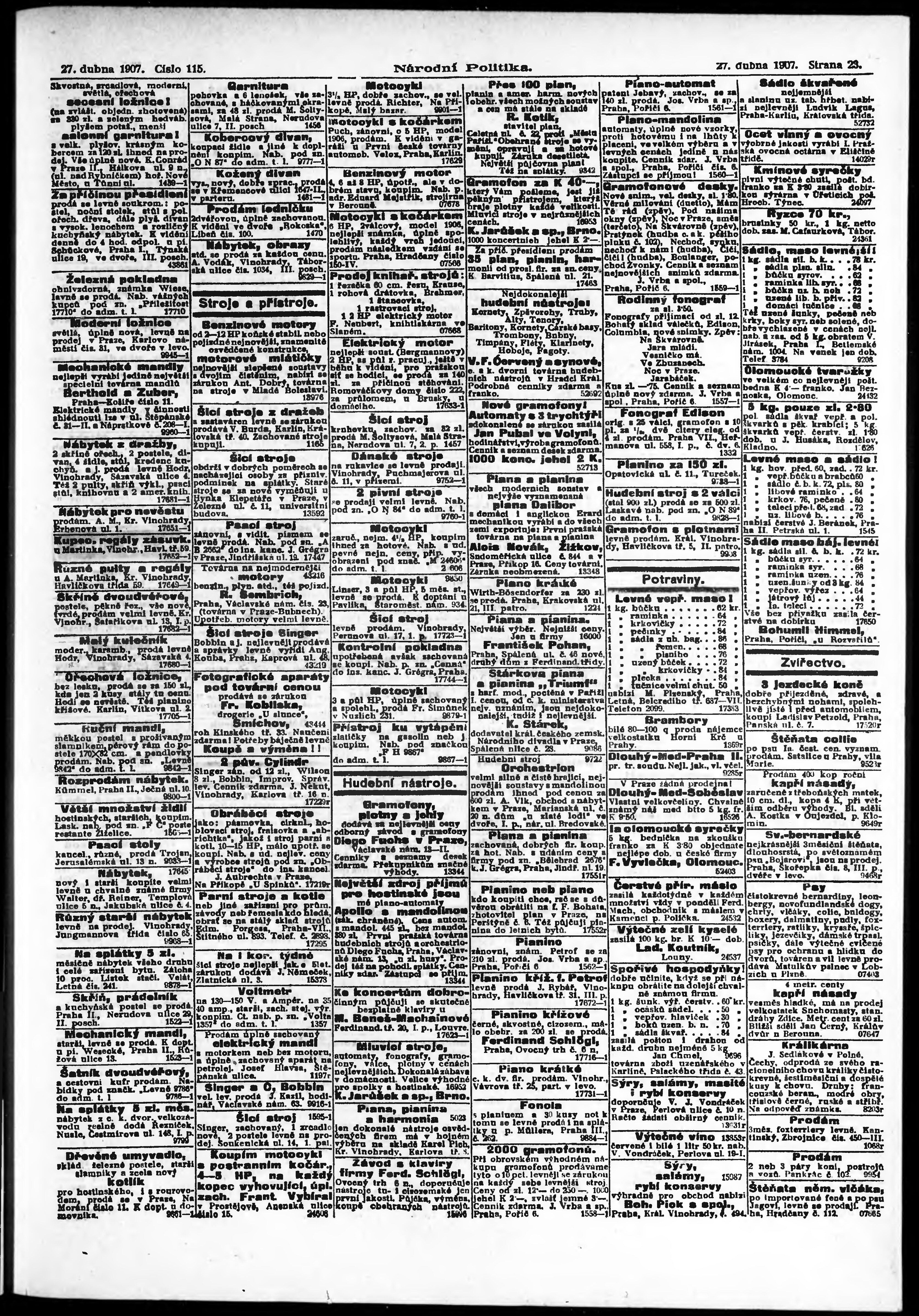 * Datum vydání výtisku: 27.4.1907 Číslo výtisku: 115 Poznámky k výtisku: ranní vydání;