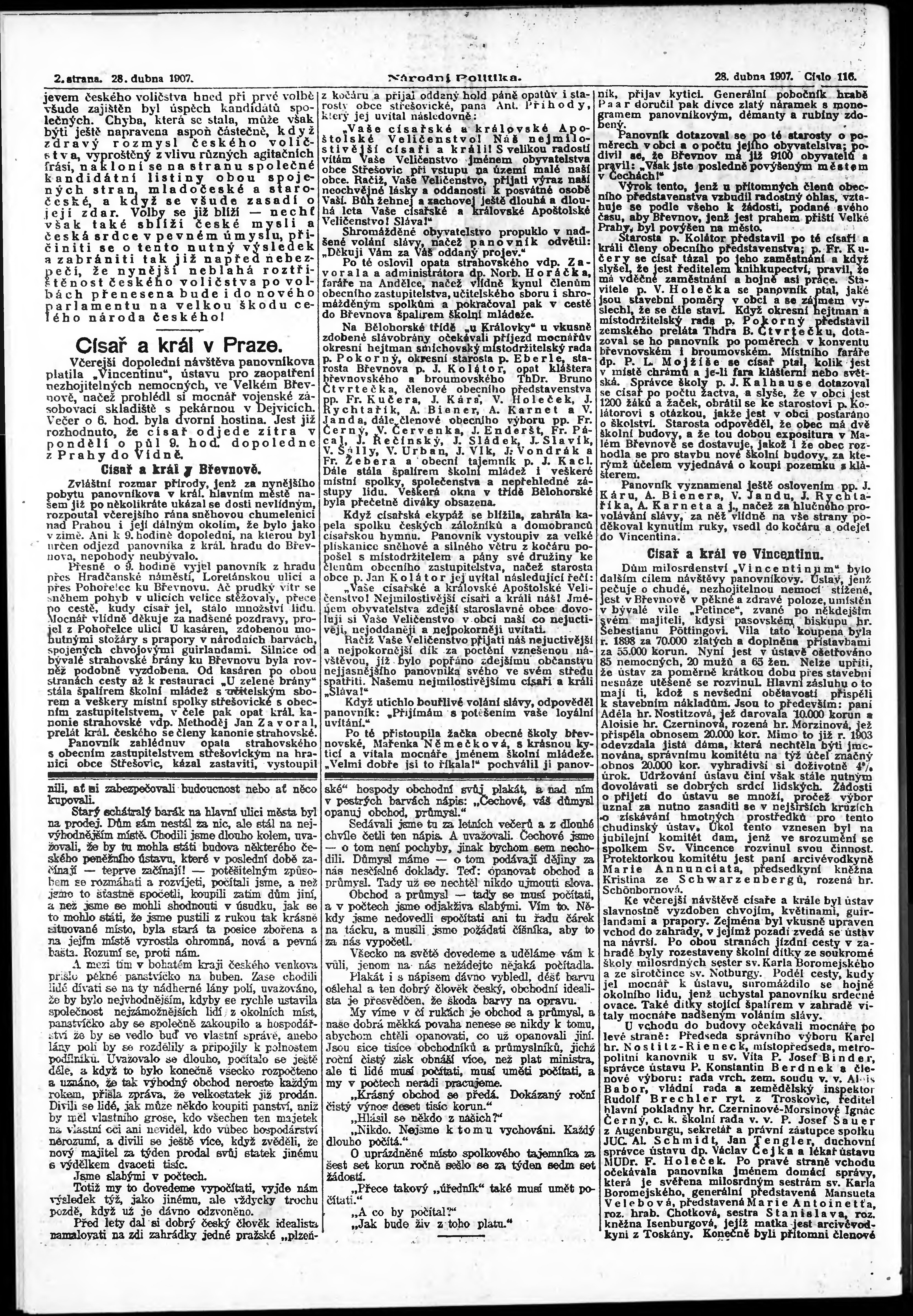 * Datum vydání výtisku: 28.4.1907 Číslo výtisku: 116 Poznámky k výtisku: ranní vydání;