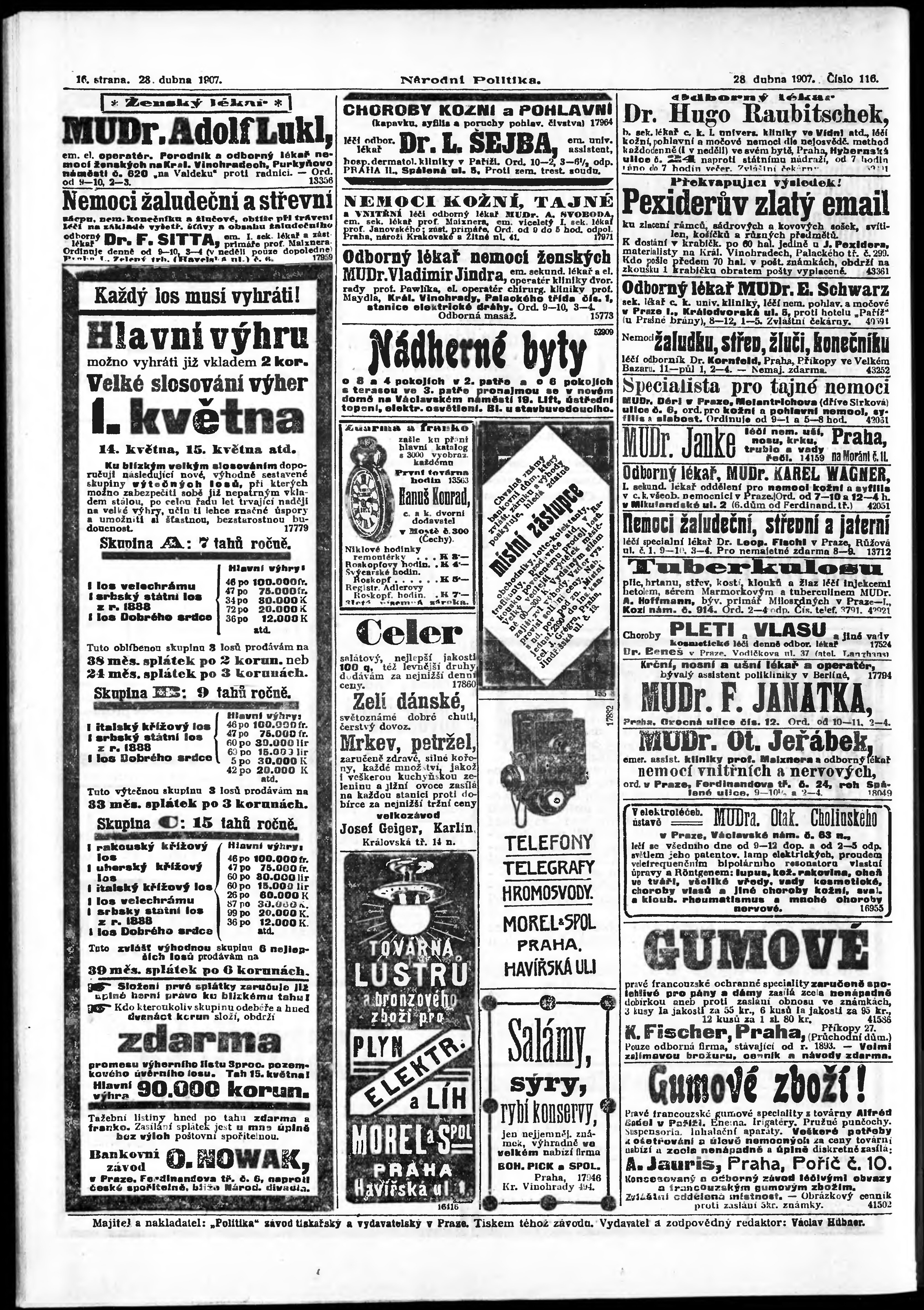 * Datum vydání výtisku: 28.4.1907 Číslo výtisku: 116 Poznámky k výtisku: ranní vydání;