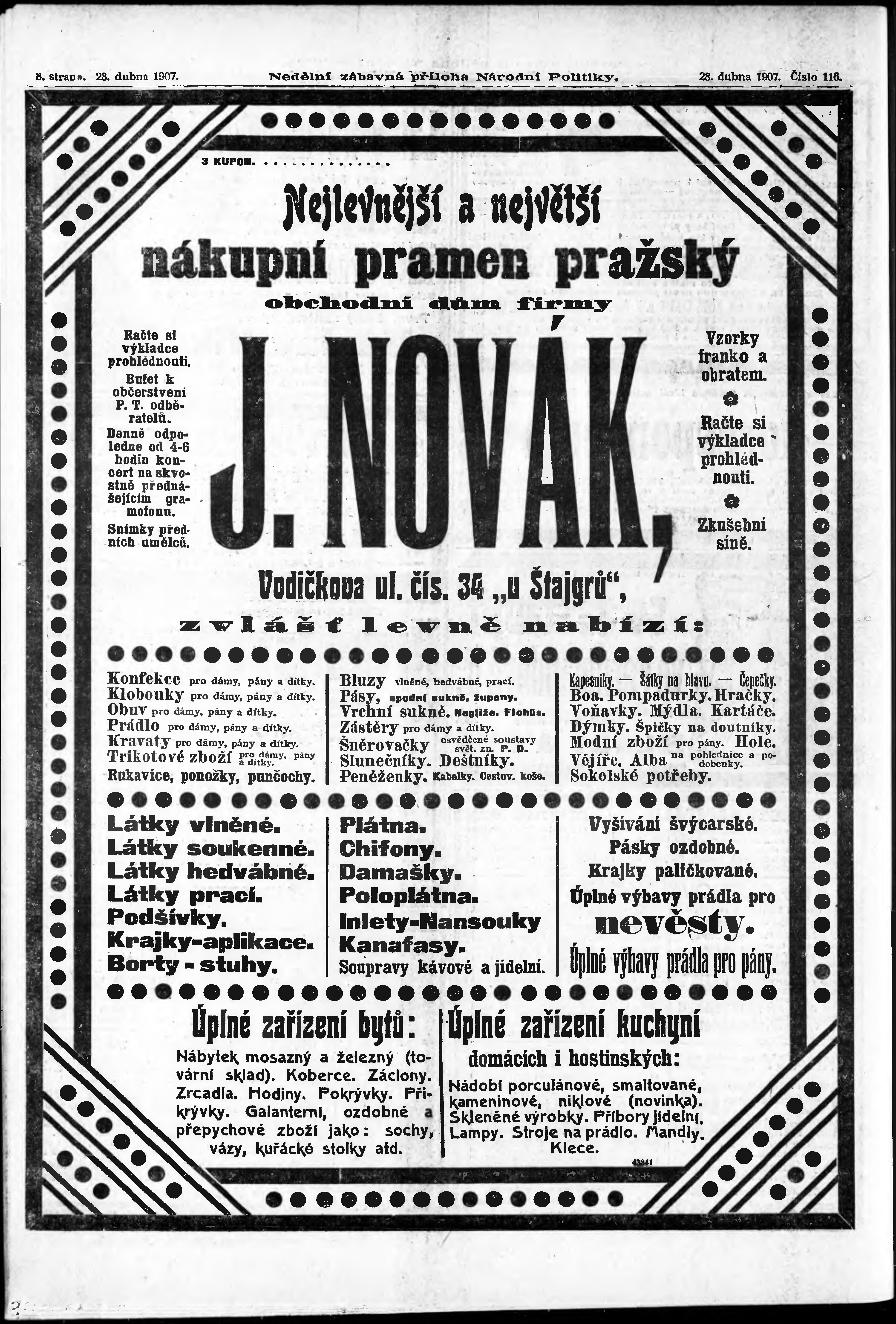 * Datum vydání výtisku: 28.4.1907 Číslo výtisku: 116 Typ výtisku: příloha