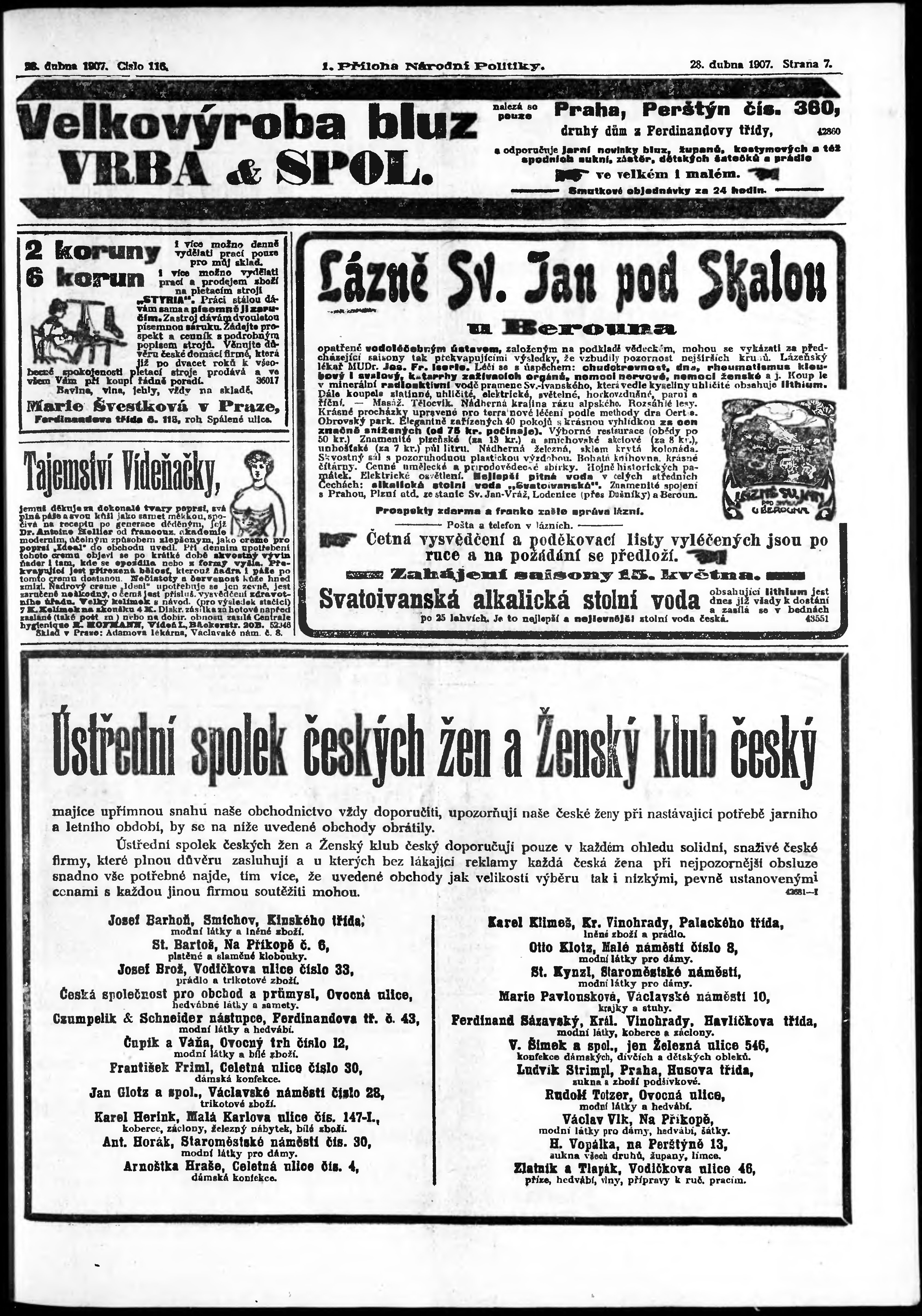 * Datum vydání výtisku: 28.4.1907 Číslo výtisku: 116 Typ výtisku: příloha Poznámky k výtisku: 1. příloha;