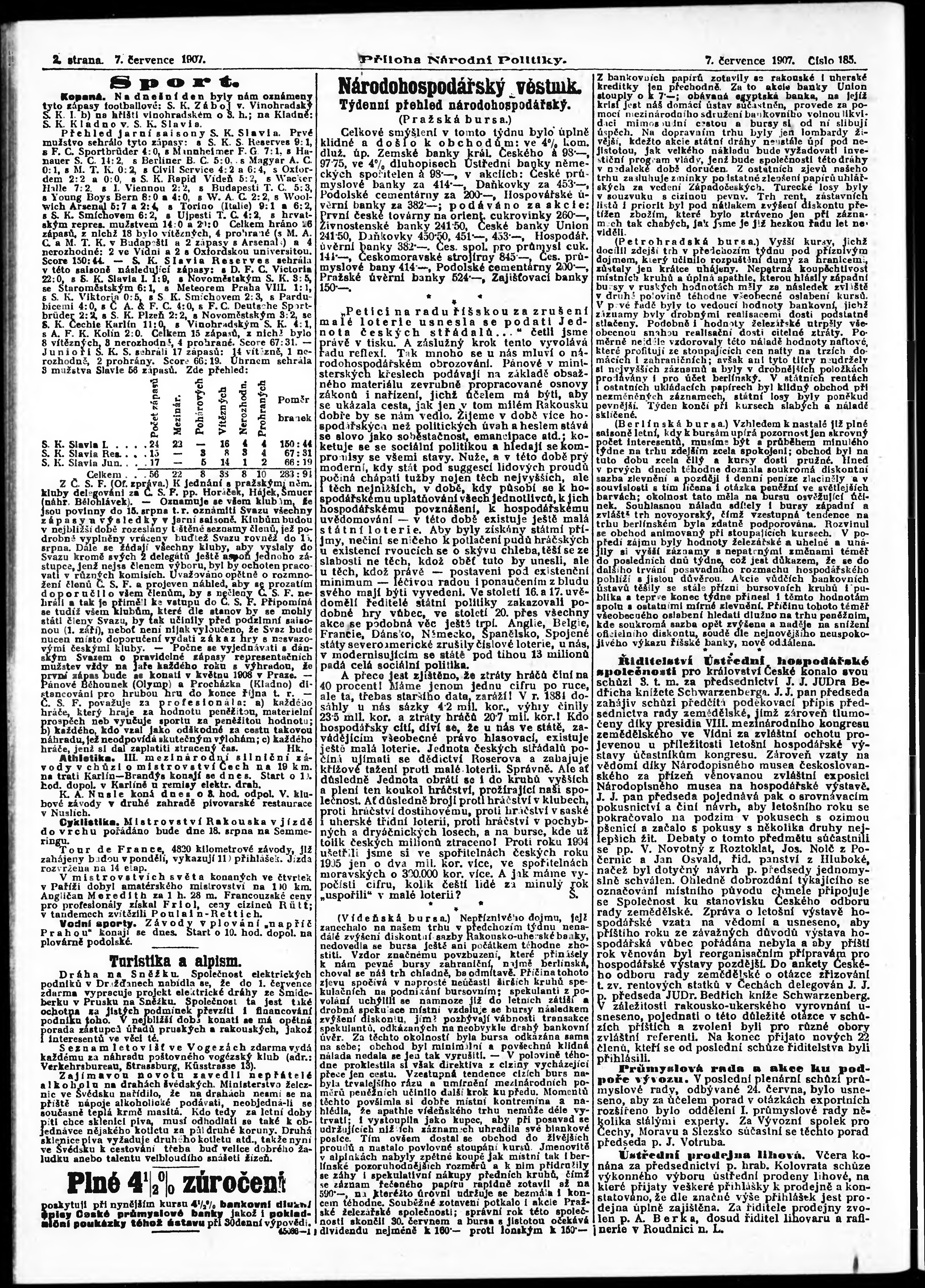 * Datum vydání výtisku: 7.7.1907 Číslo výtisku: 185 Typ výtisku: příloha