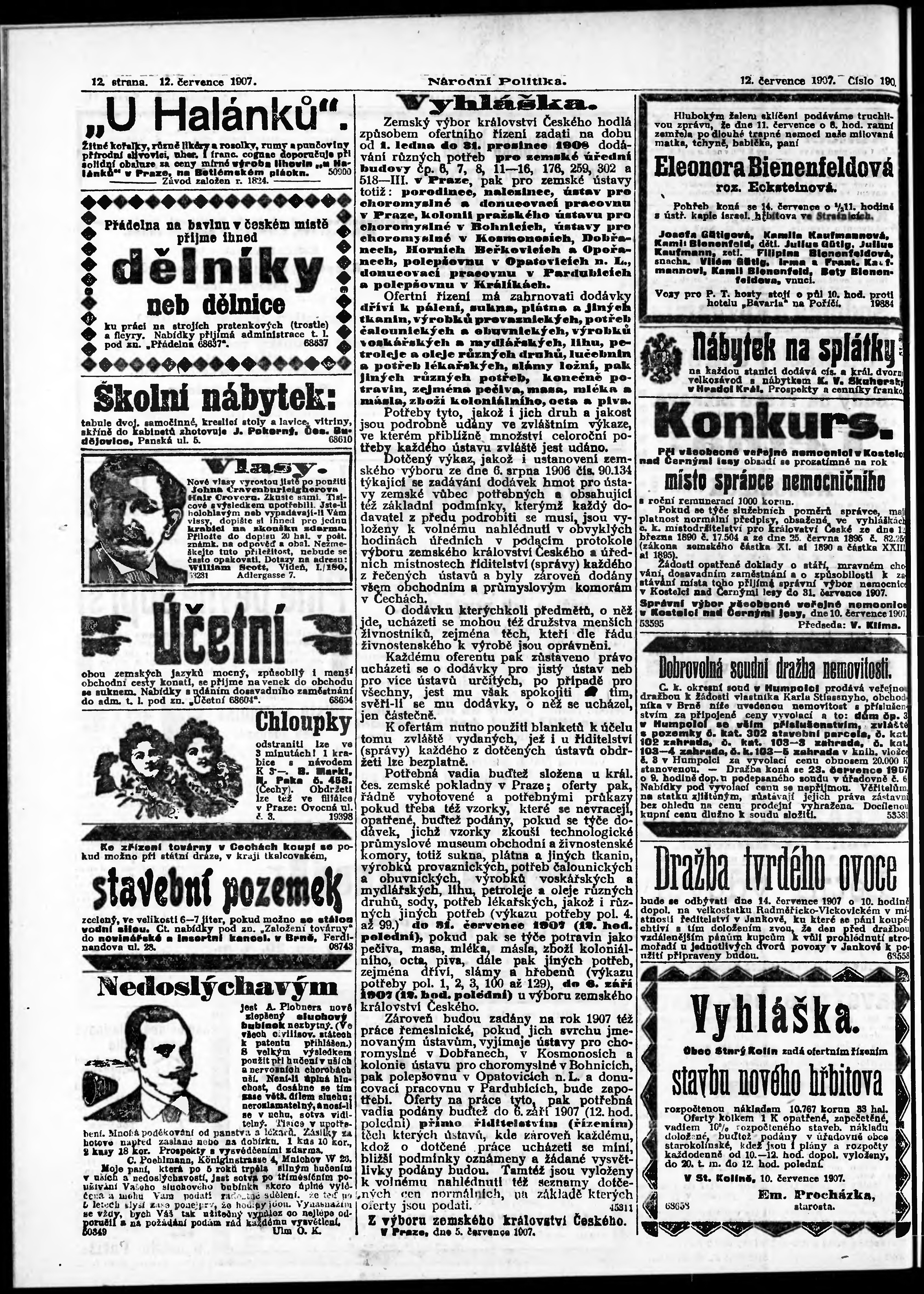 * Datum vydání výtisku: 12.7.1907 Číslo výtisku: 190 Poznámky k výtisku: ranní vydání;
