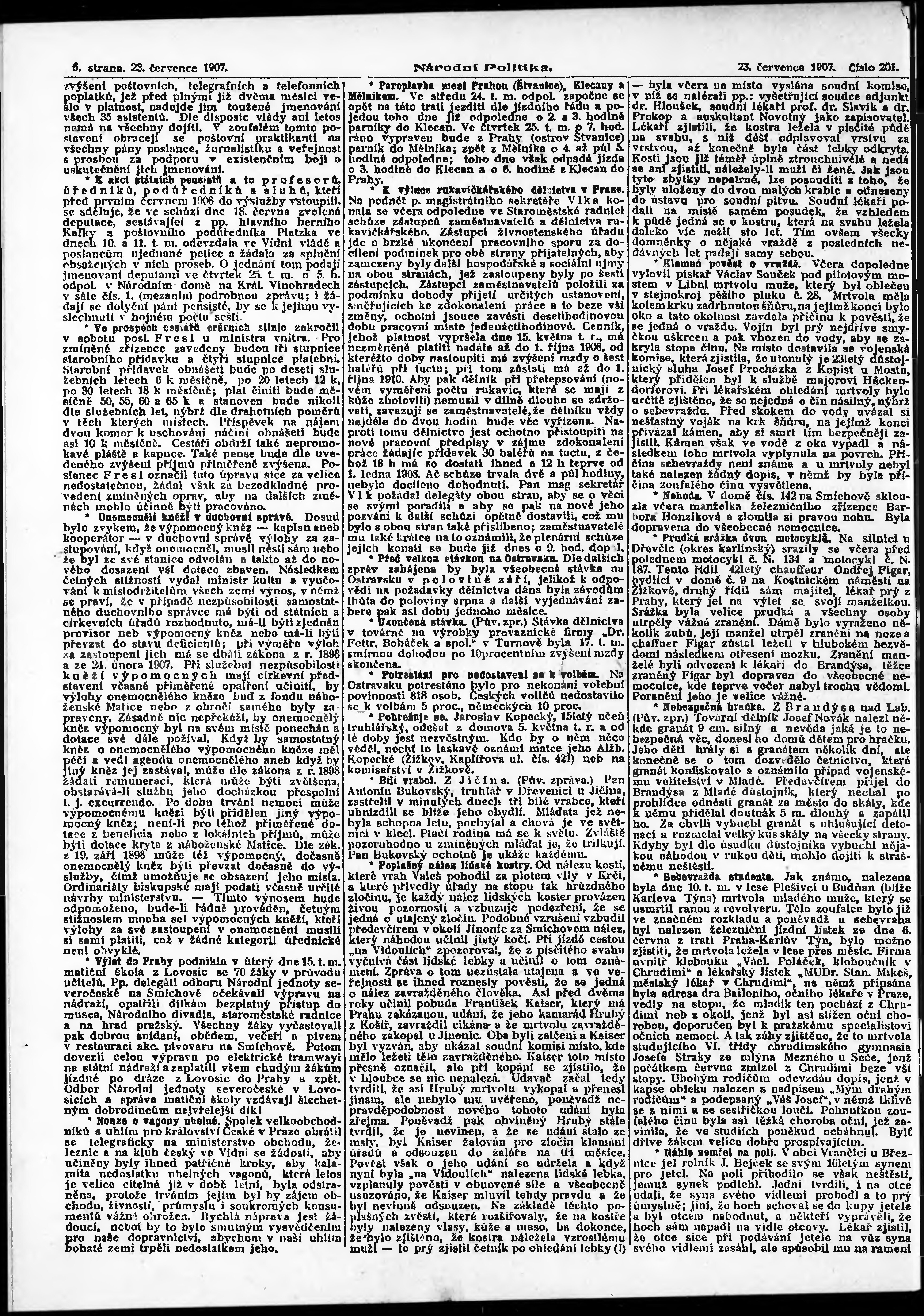 * Datum vydání výtisku: 23.7.1907 Číslo výtisku: 201 Poznámky k výtisku: ranní vydání; s. 7 - 8, 11 - 14, 17 - 18 není k dispozici;