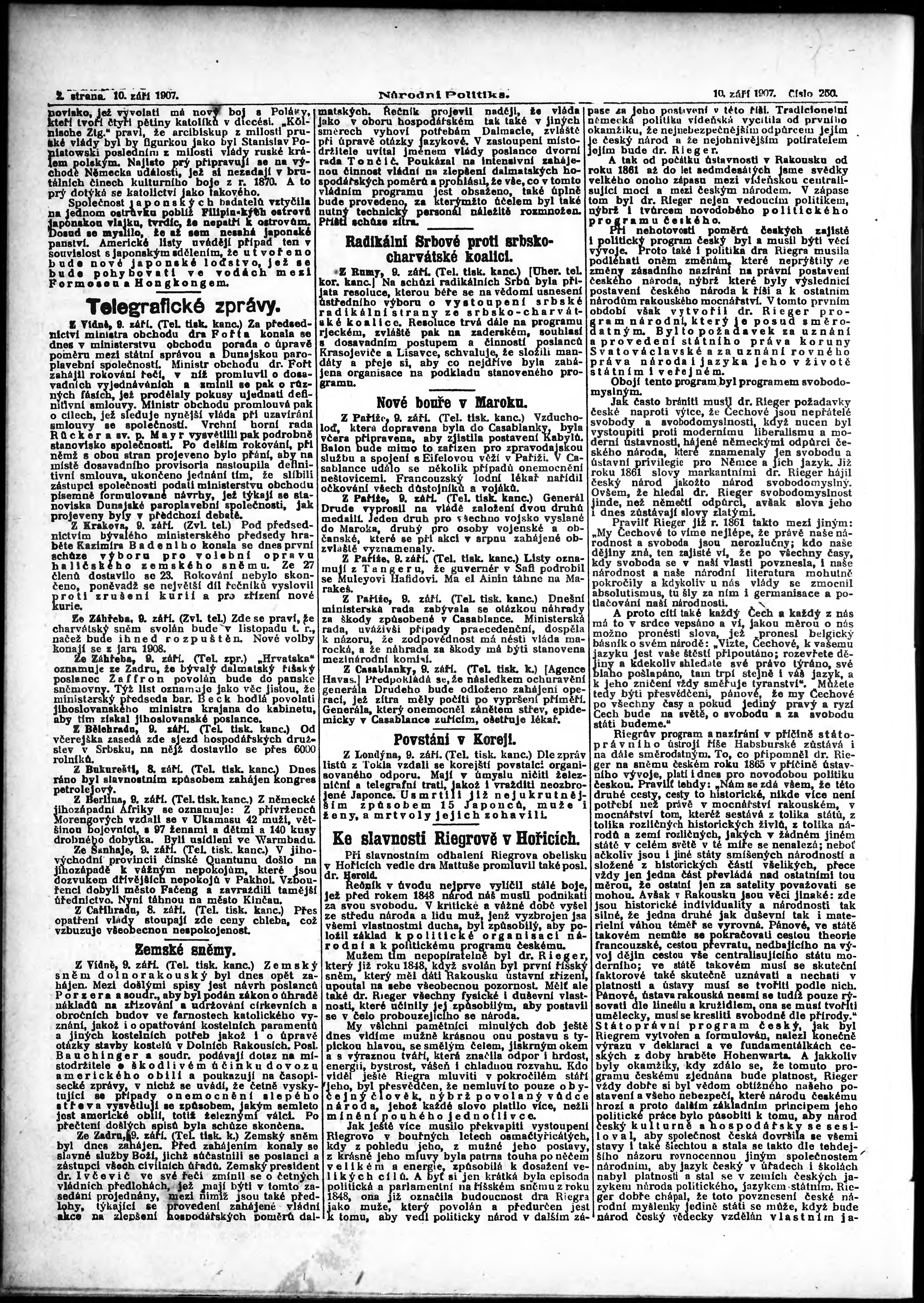 * Datum vydání výtisku: 10.9.1907 Číslo výtisku: 250 Poznámky k výtisku: ranní vydání; s. 15 - 16, 19 - 20 není k dispozici;