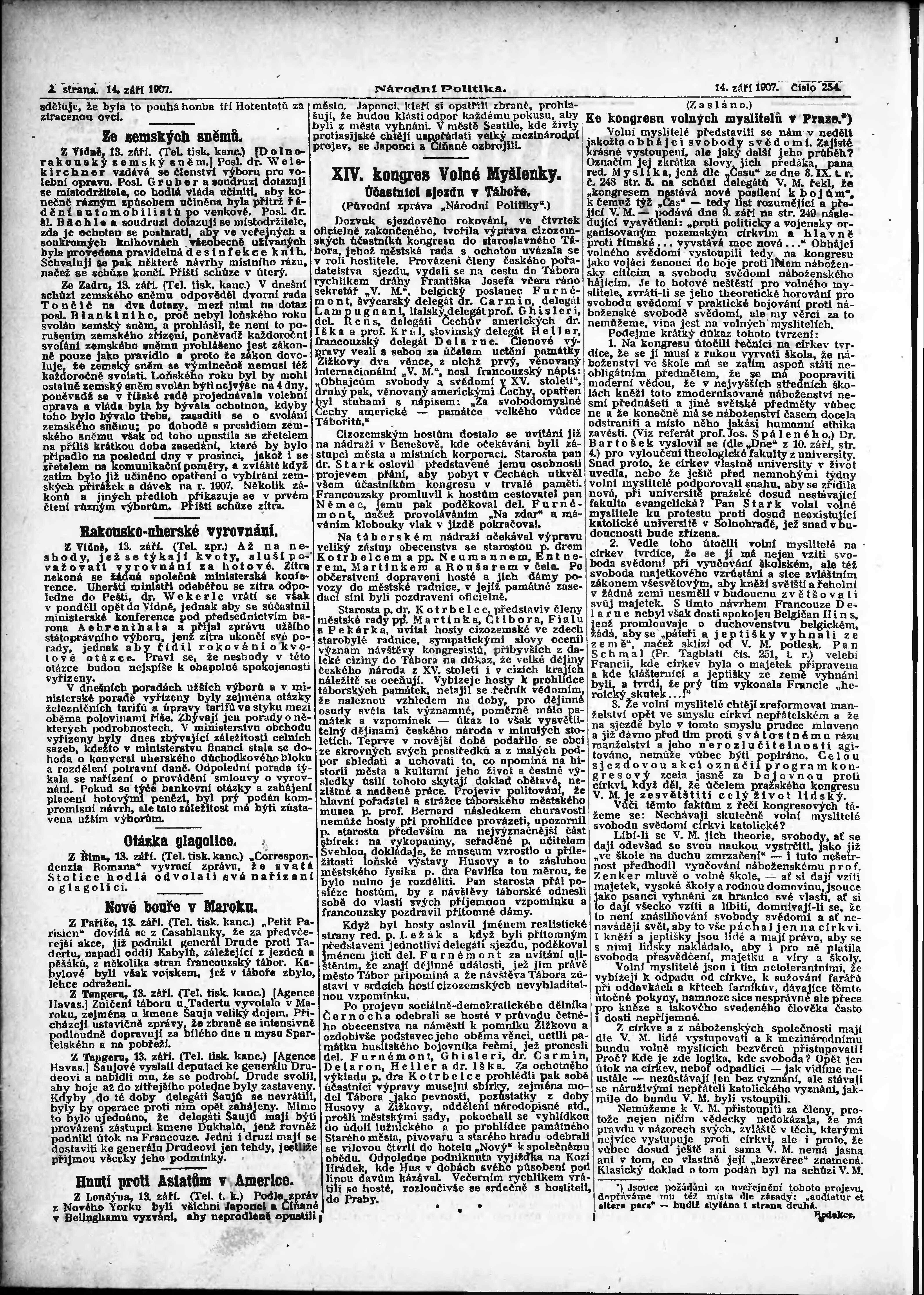 * Datum vydání výtisku: 14.9.1907 Číslo výtisku: 254 Poznámky k výtisku: ranní vydání;
