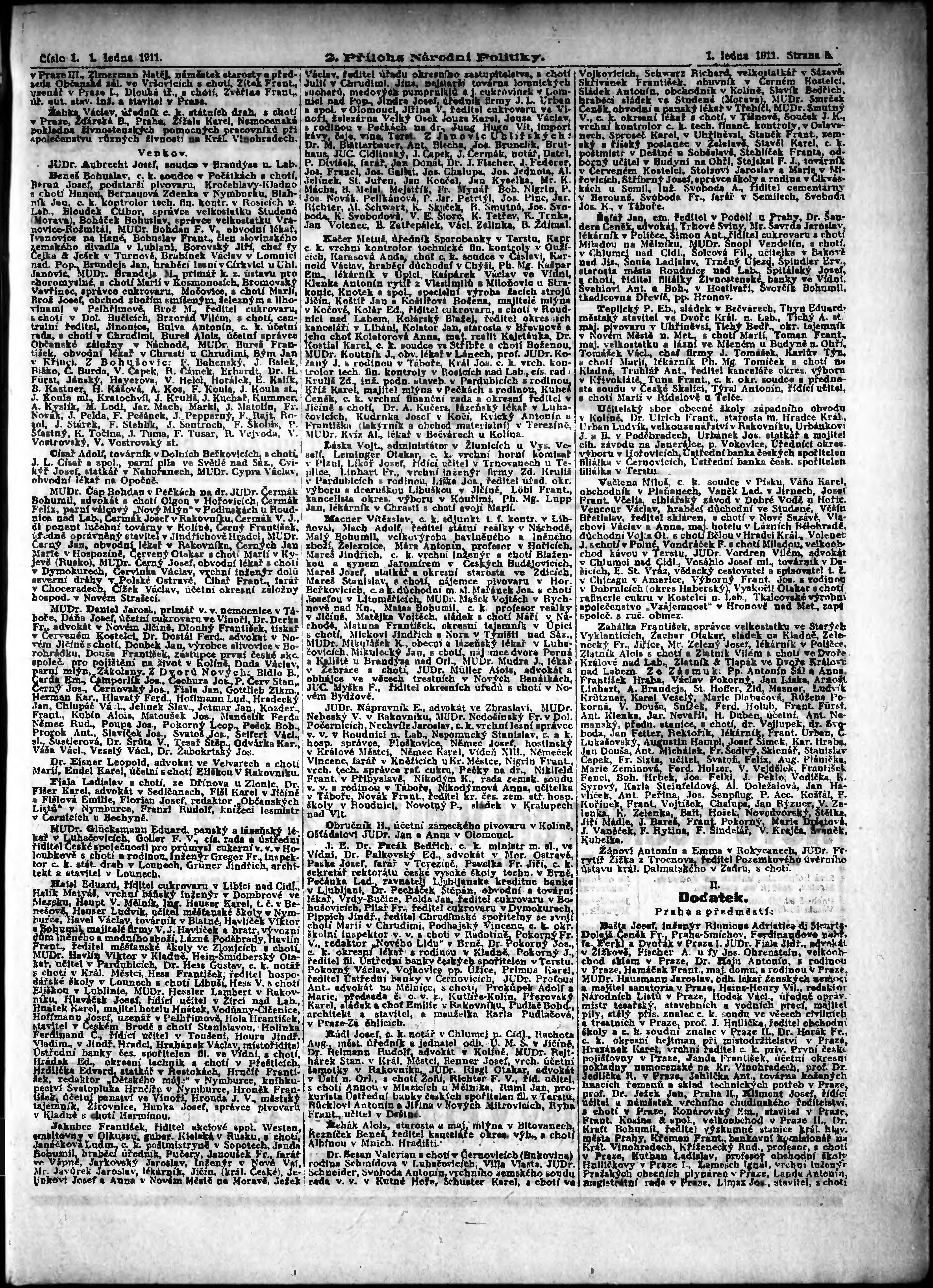 * Datum vydání výtisku: 1.1.1911 Číslo výtisku: 1 Typ výtisku: příloha Poznámky k výtisku: 2. příloha;