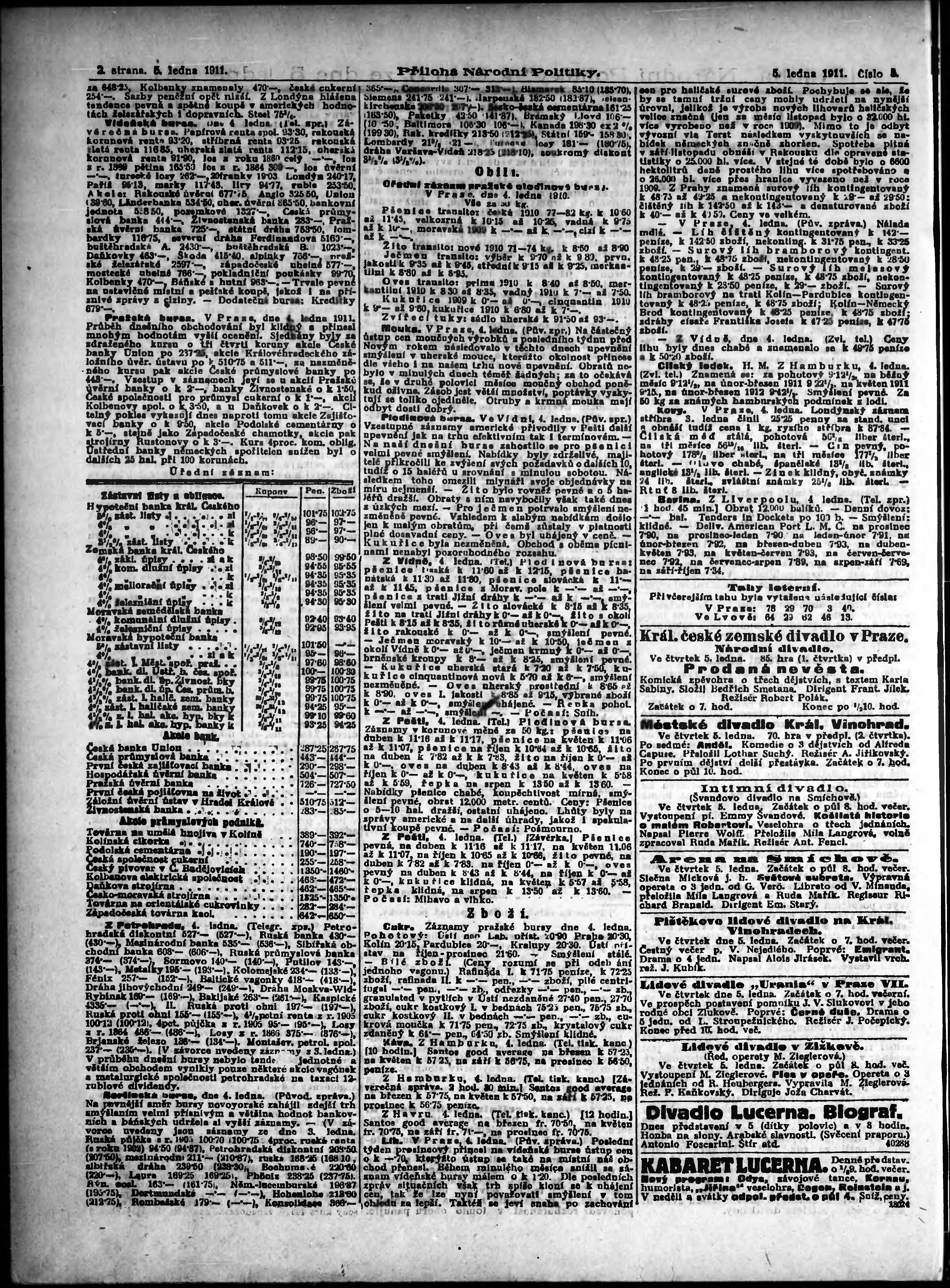 * Datum vydání výtisku: 5.1.1911 Číslo výtisku: 5 Typ výtisku: příloha