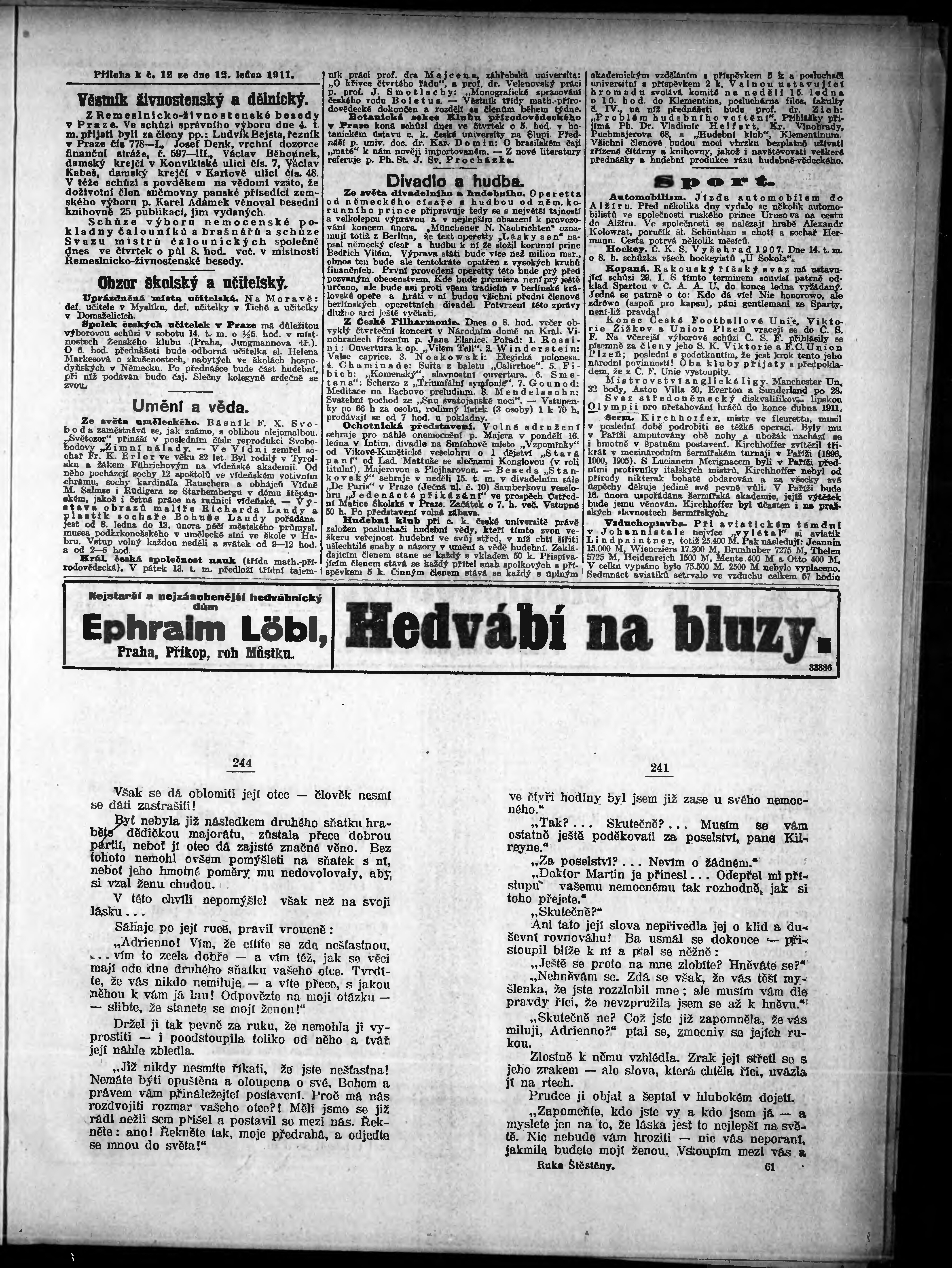 * Datum vydání výtisku: 12.1.1911 Číslo výtisku: 12 Poznámky k výtisku: odpolední vydání;