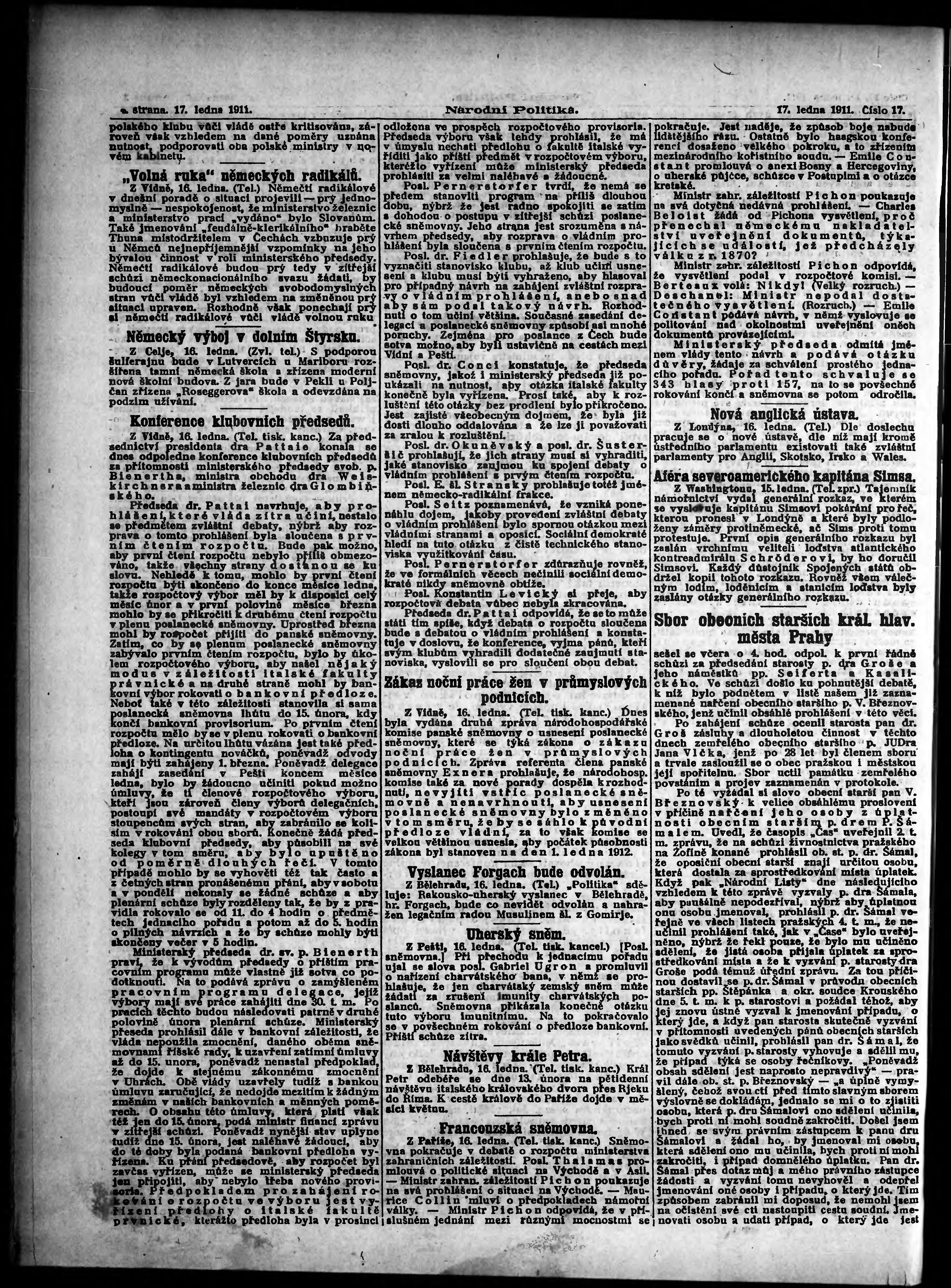 * Datum vydání výtisku: 17.1.1911 Číslo výtisku: 17 Poznámky k výtisku: ranní vydání;