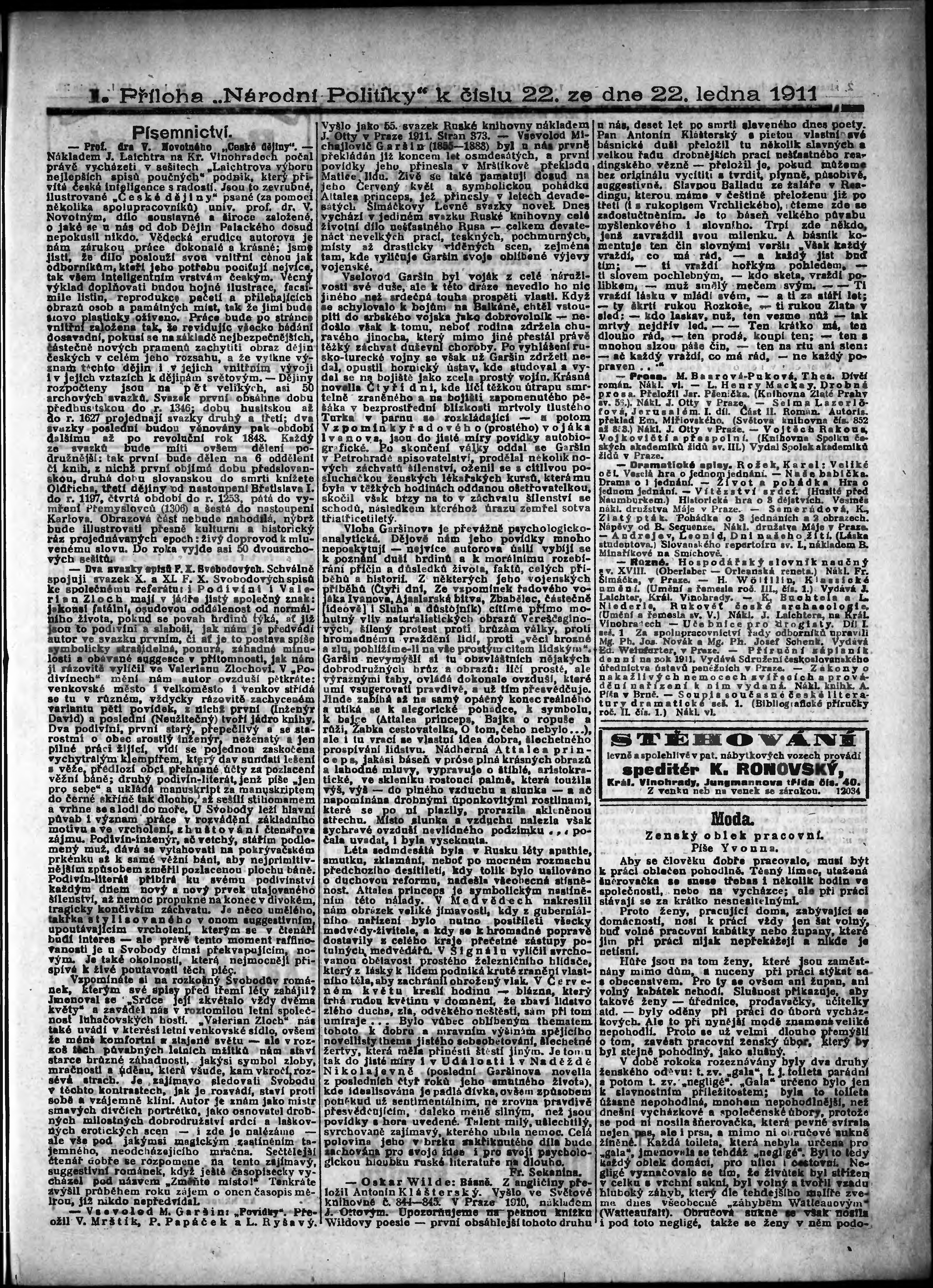 * Datum vydání výtisku: 22.1.1911 Číslo výtisku: 22 Typ výtisku: příloha Poznámky k výtisku: 1. příloha;
