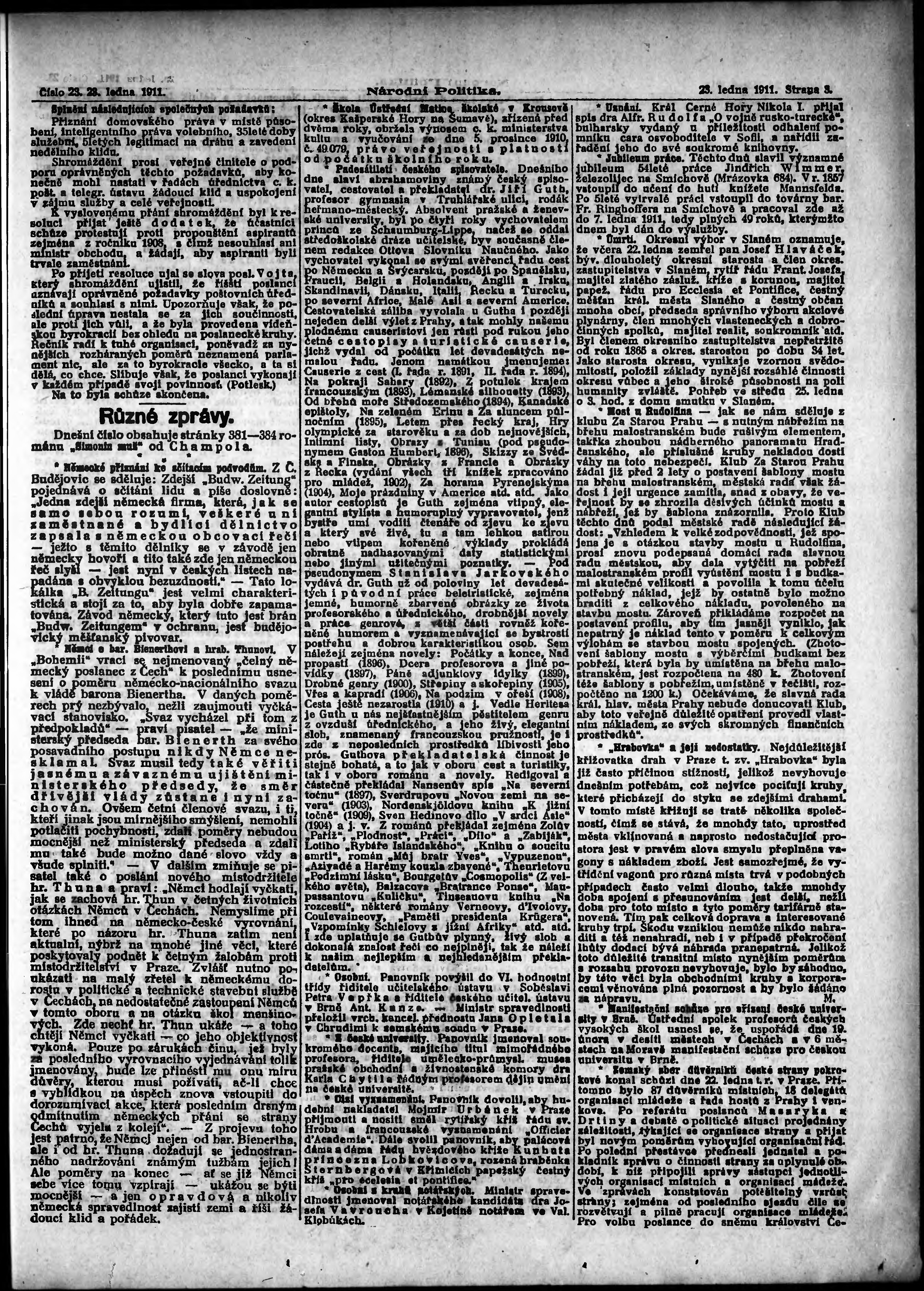 * Datum vydání výtisku: 23.1.1911 Číslo výtisku: 23 Poznámky k výtisku: ranní vydání;