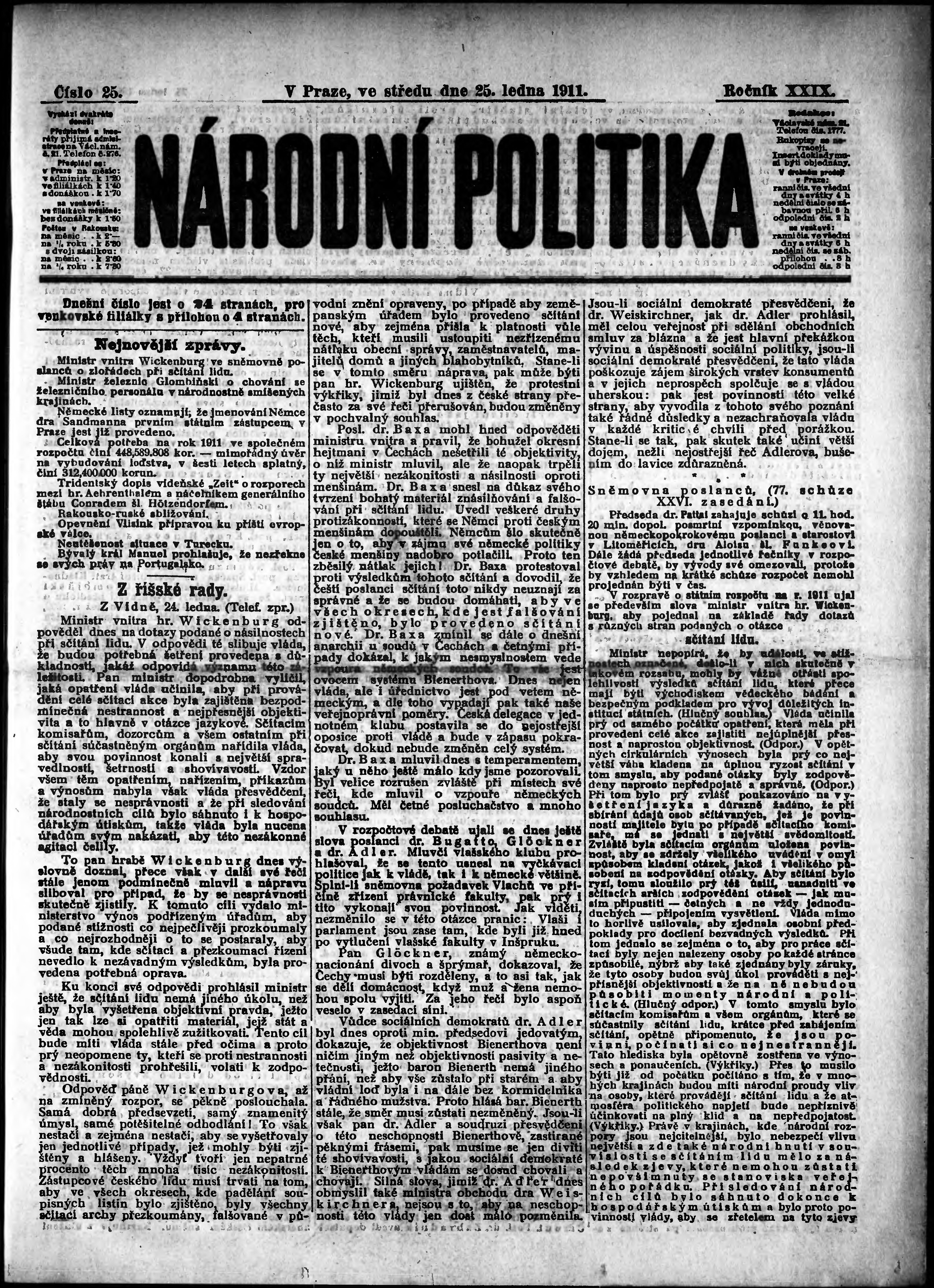 Datum vydání výtisku: 25.1.1911
