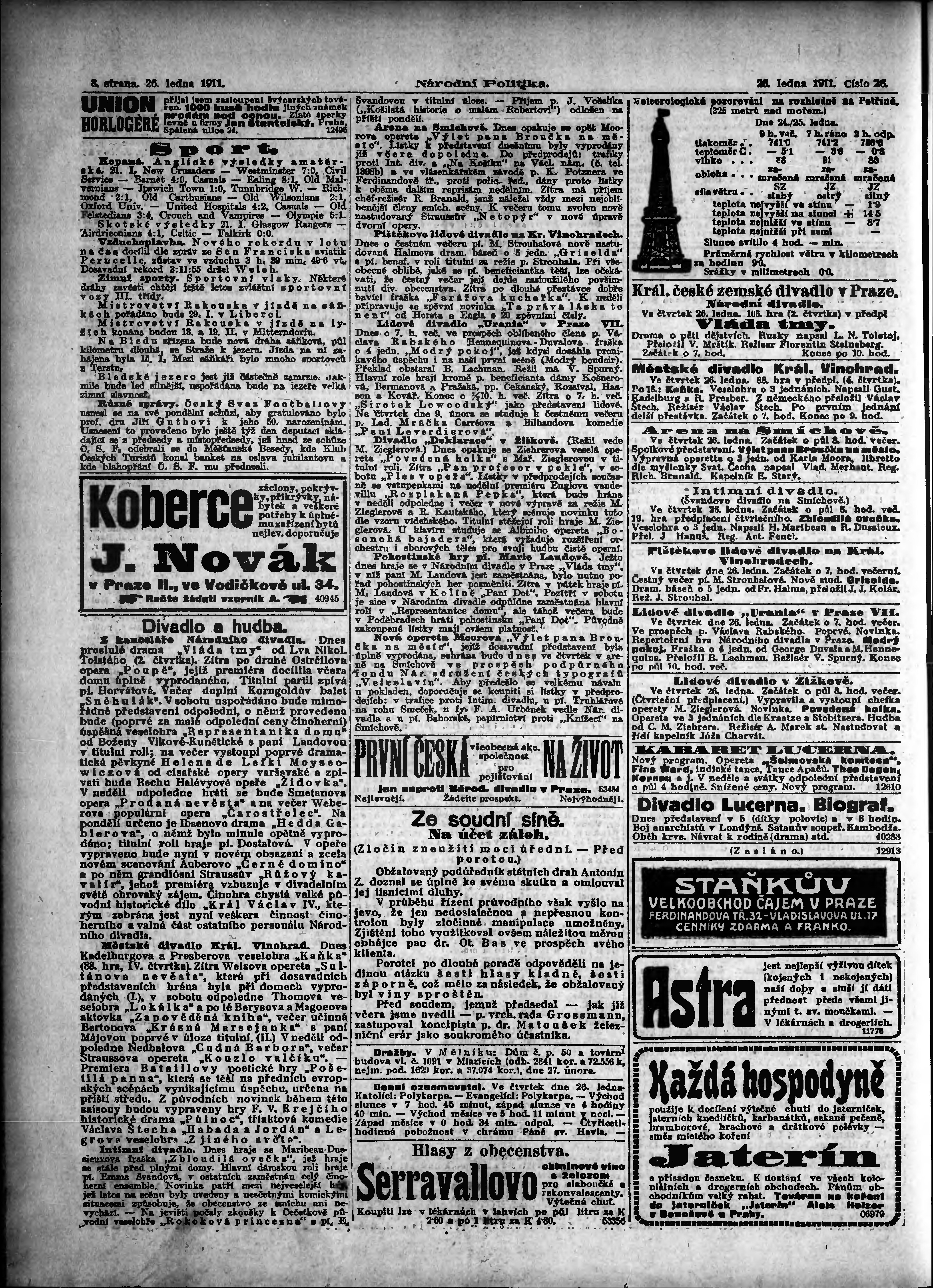 * Datum vydání výtisku: 26.1.1911 Číslo výtisku: 26 Poznámky k výtisku: ranní vydání;