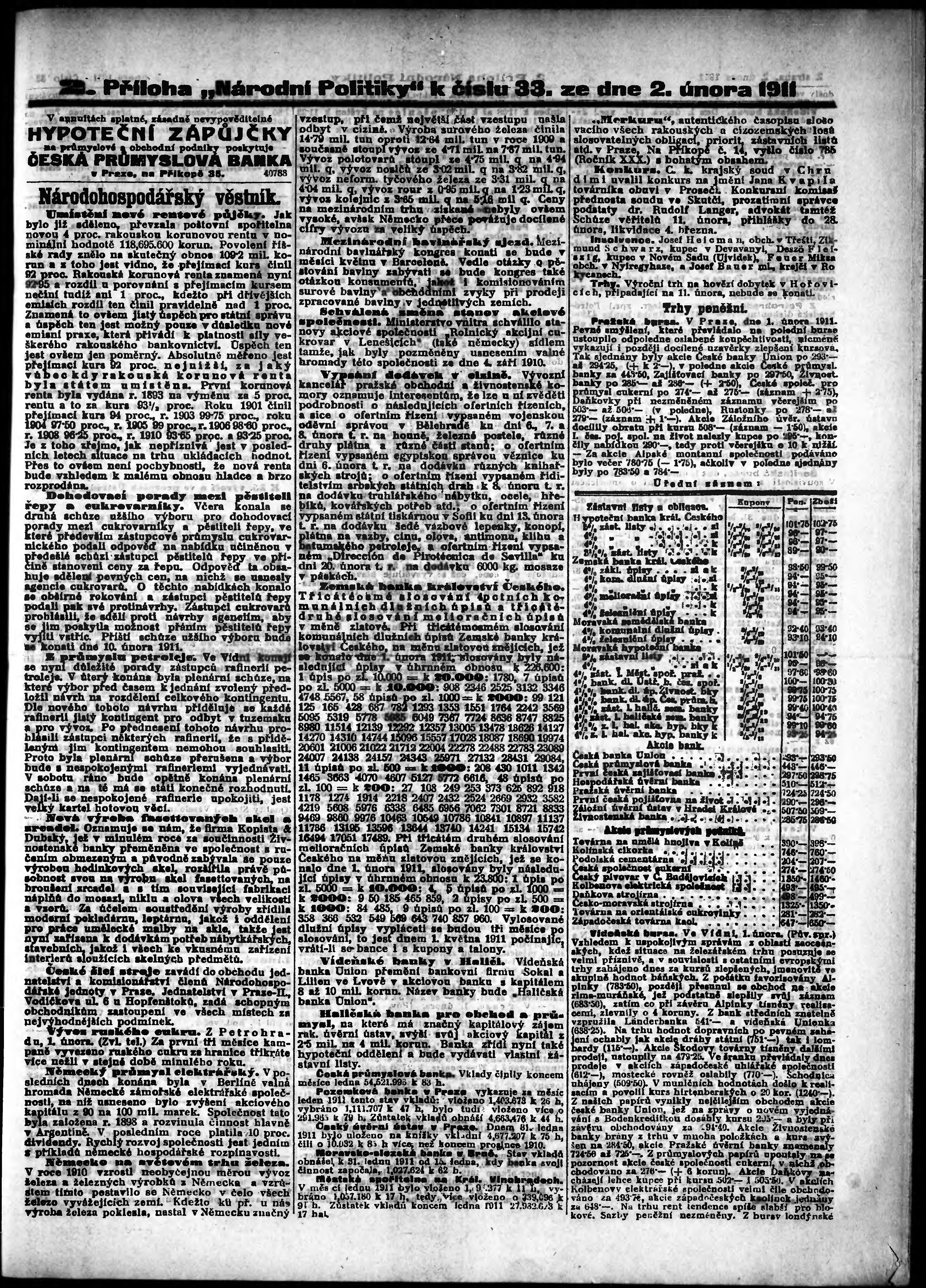 * Datum vydání výtisku: 2.2.1911 Číslo výtisku: 33 Typ výtisku: příloha Poznámky k výtisku: 2. příloha;