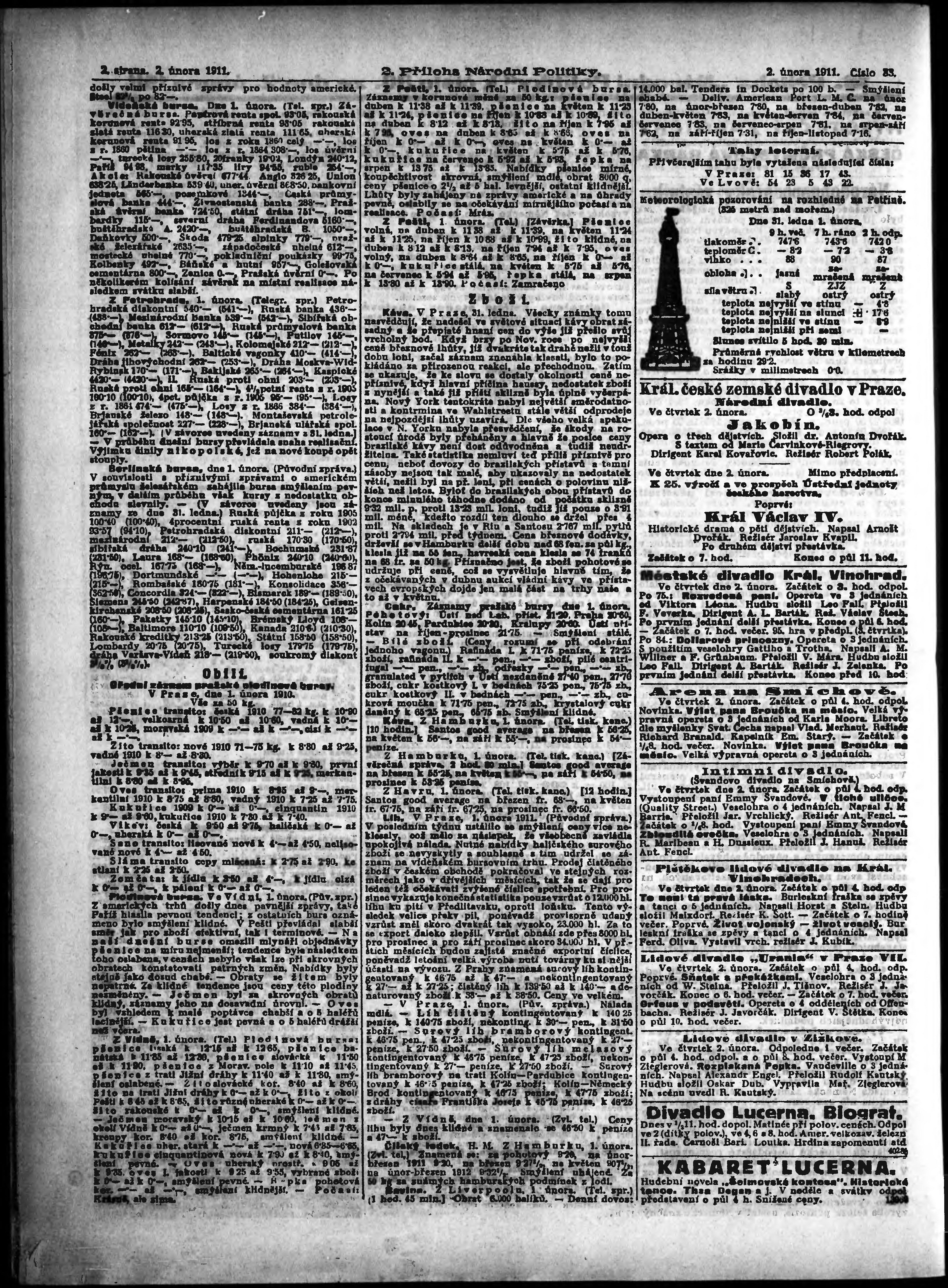 * Datum vydání výtisku: 2.2.1911 Číslo výtisku: 33 Typ výtisku: příloha Poznámky k výtisku: 2. příloha;