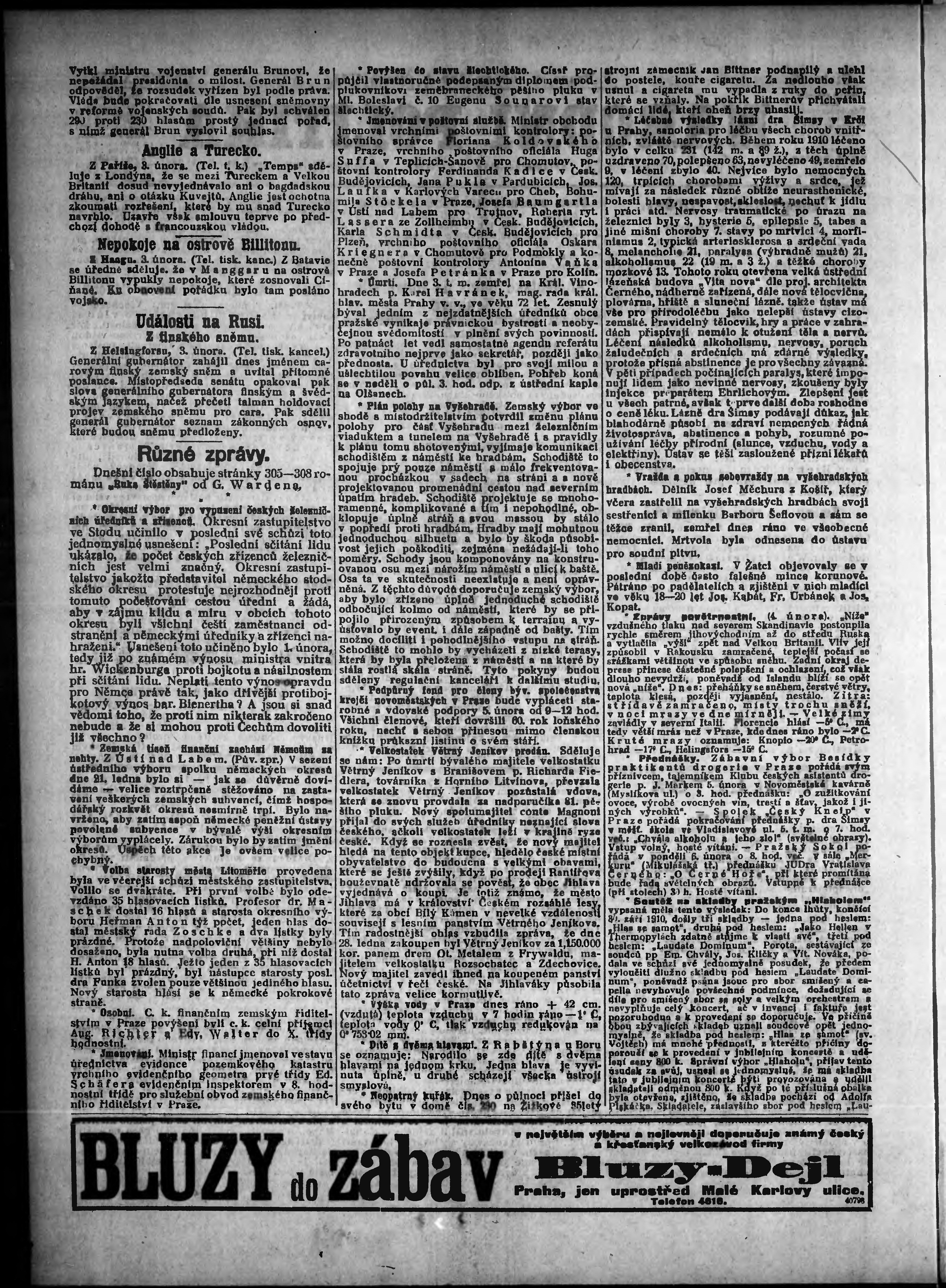 * Datum vydání výtisku: 4.2.1911 Číslo výtisku: 35 Poznámky k výtisku: odpolední vydání;