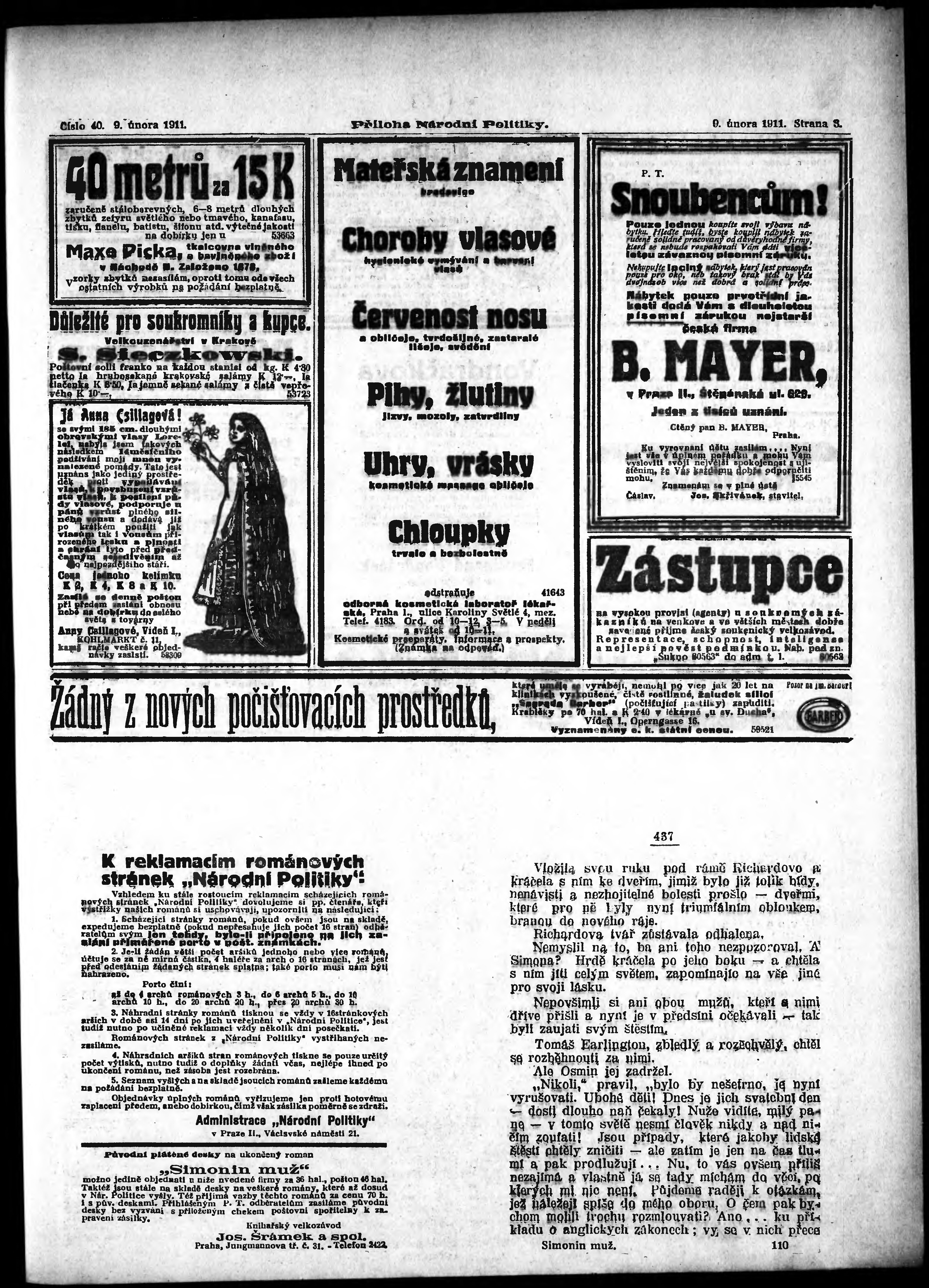 * Datum vydání výtisku: 9.2.1911 Číslo výtisku: 40 Typ výtisku: příloha