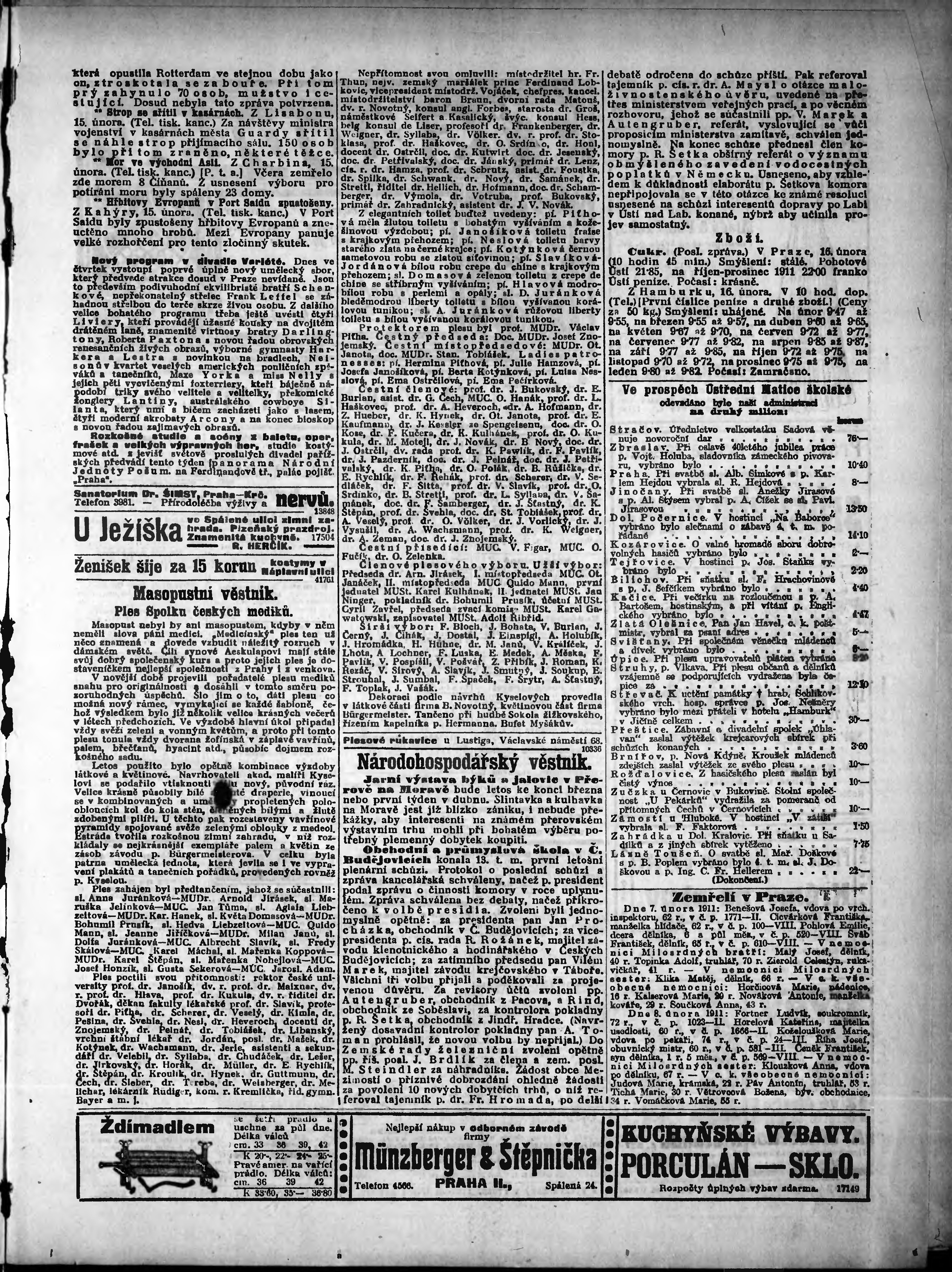 * Datum vydání výtisku: 16.2.1911 Číslo výtisku: 47 Poznámky k výtisku: odpolední vydání;