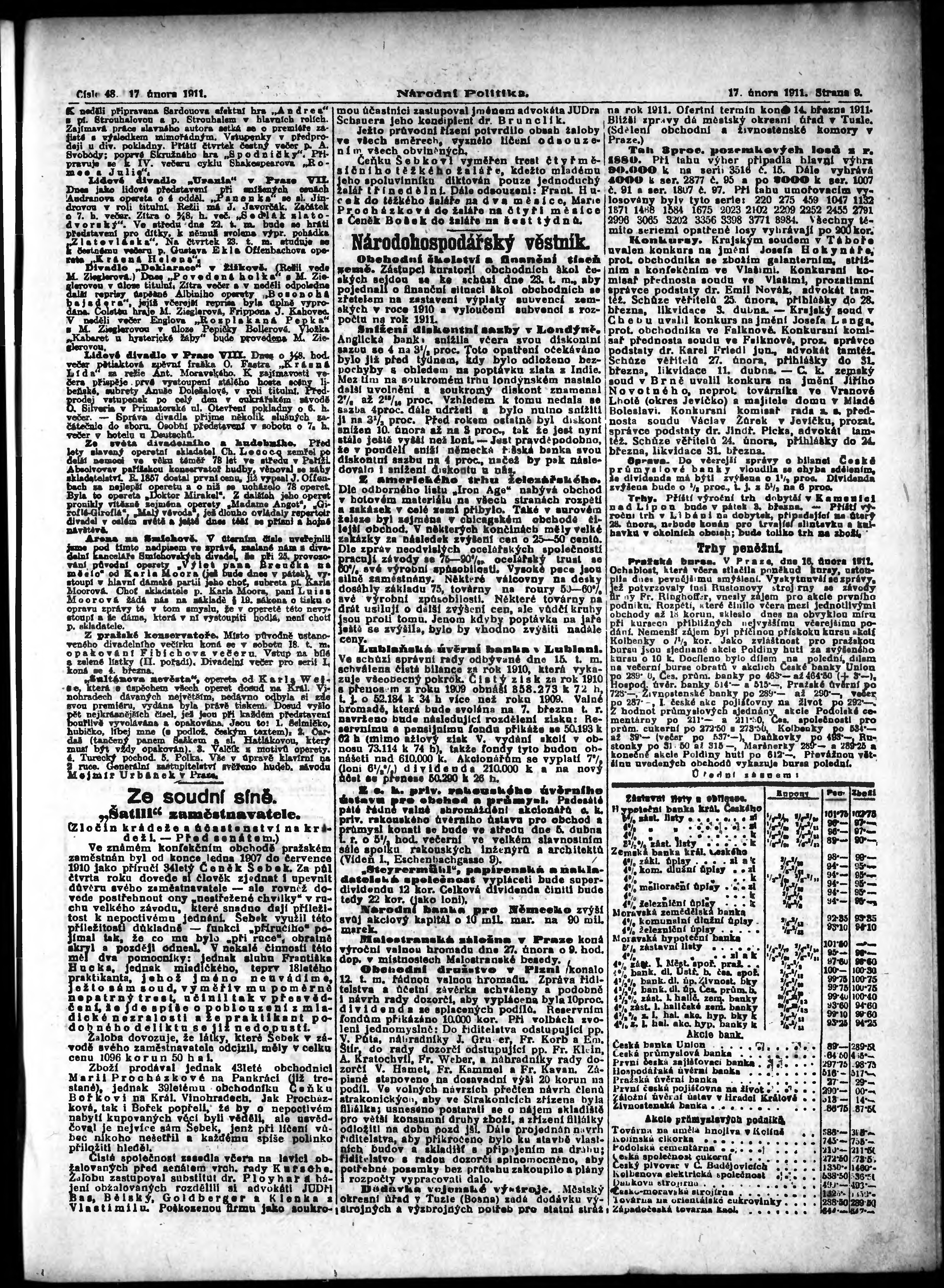 * Datum vydání výtisku: 17.2.1911 Číslo výtisku: 48 Poznámky k výtisku: ranní vydání;