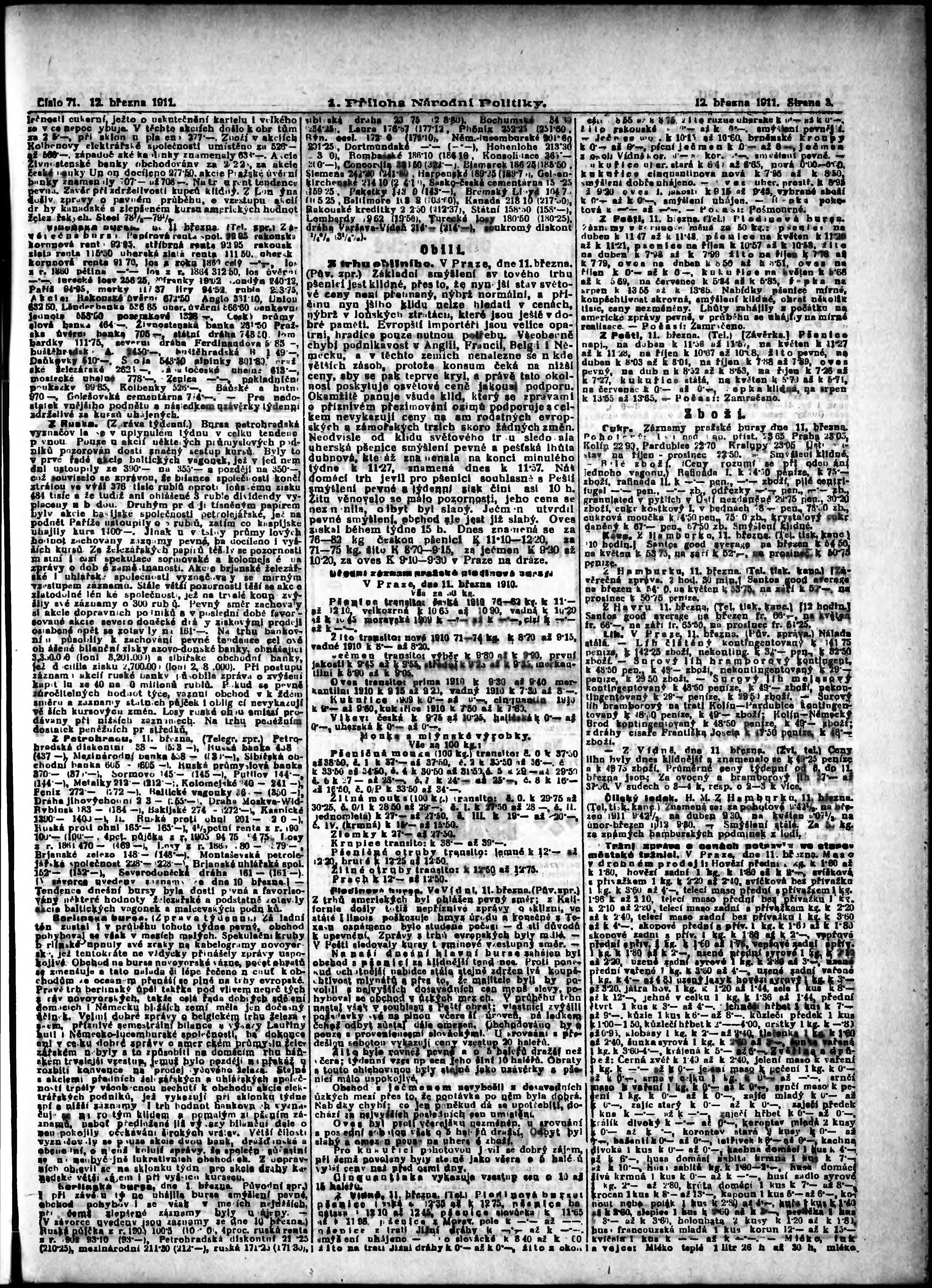 * Datum vydání výtisku: 12.3.1911 Číslo výtisku: 71 Typ výtisku: příloha Poznámky k výtisku: 4. příloha; obsahuje č. 11 Herold českoslovanského peněžnictví;