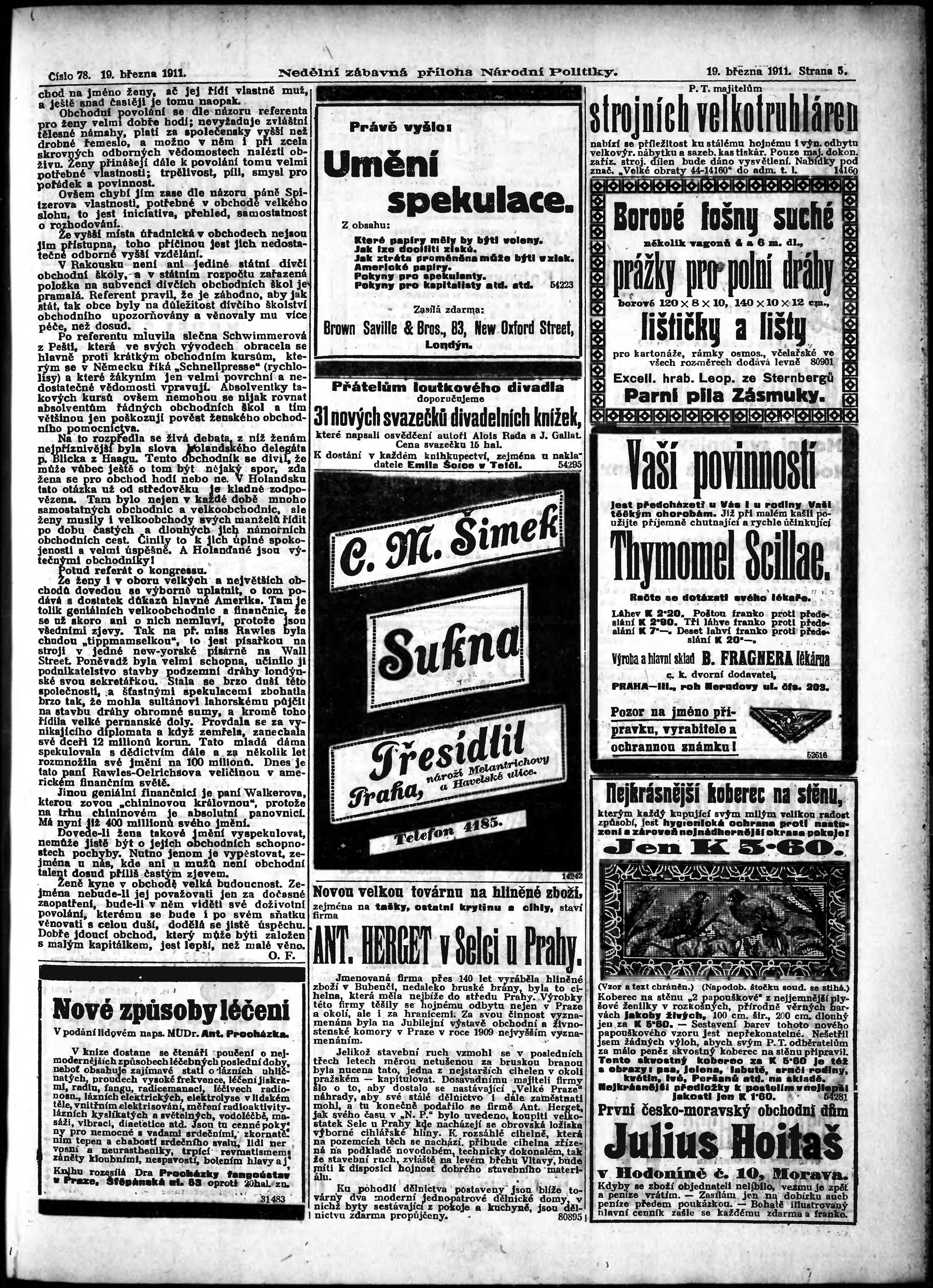 * Datum vydání výtisku: 19.3.1911 Číslo výtisku: 78 Typ výtisku: příloha
