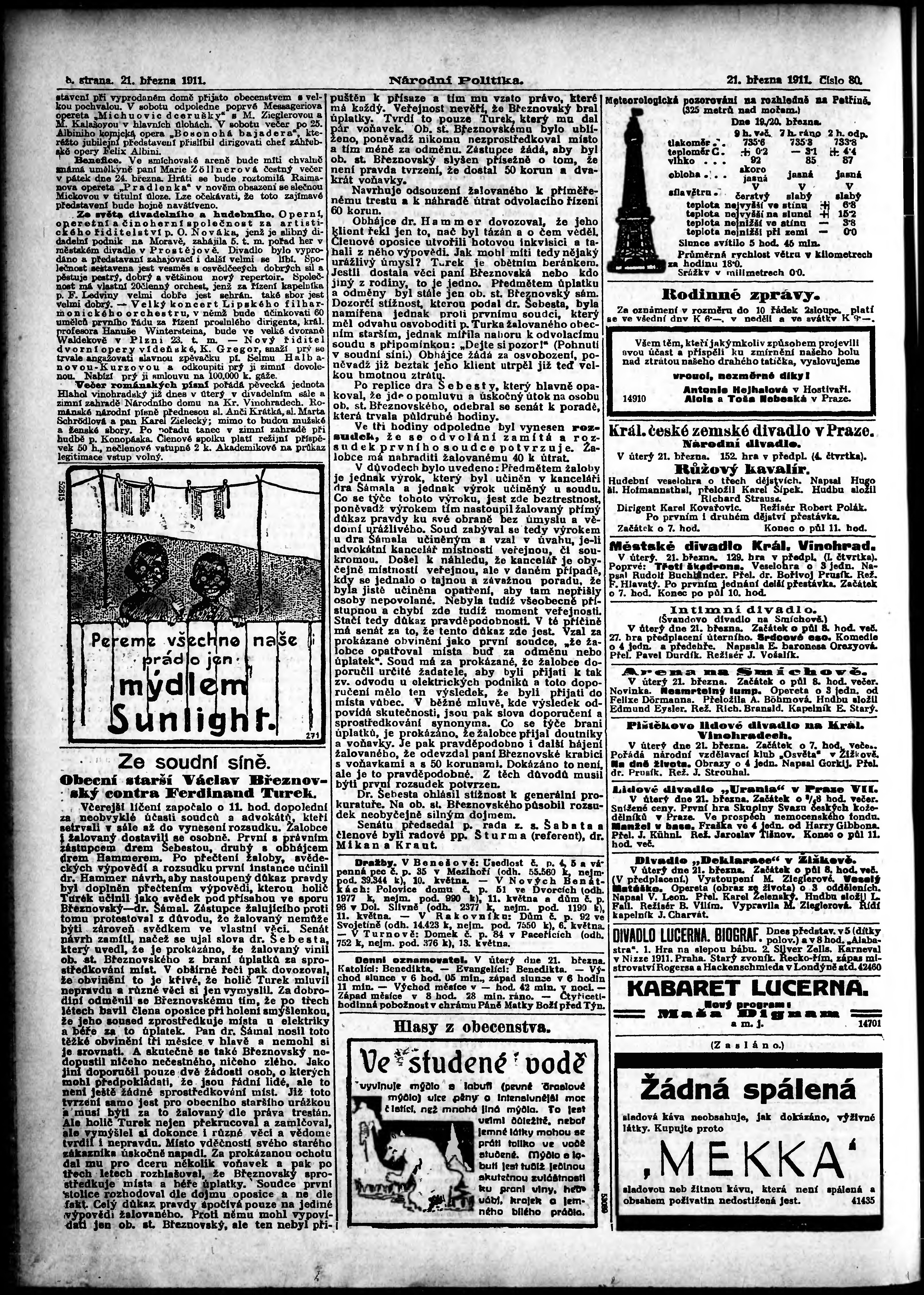 * Datum vydání výtisku: 21.3.1911 Číslo výtisku: 80 Poznámky k výtisku: ranní vydání; s. 9 - 10 není k dispozici;