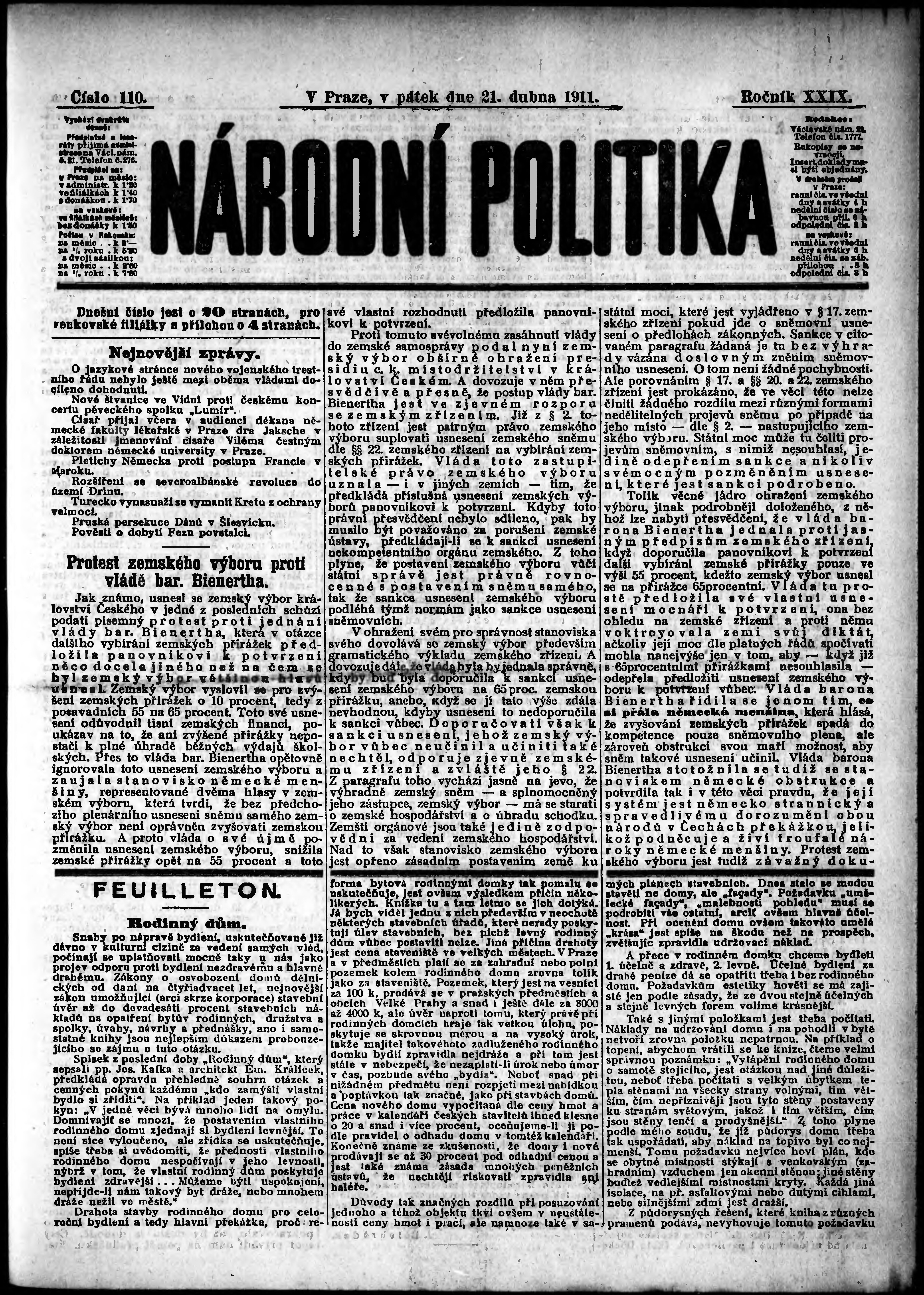 * Datum vydání výtisku: 21.4.1911 Číslo výtisku: 110 Poznámky k výtisku: ranní vydání;