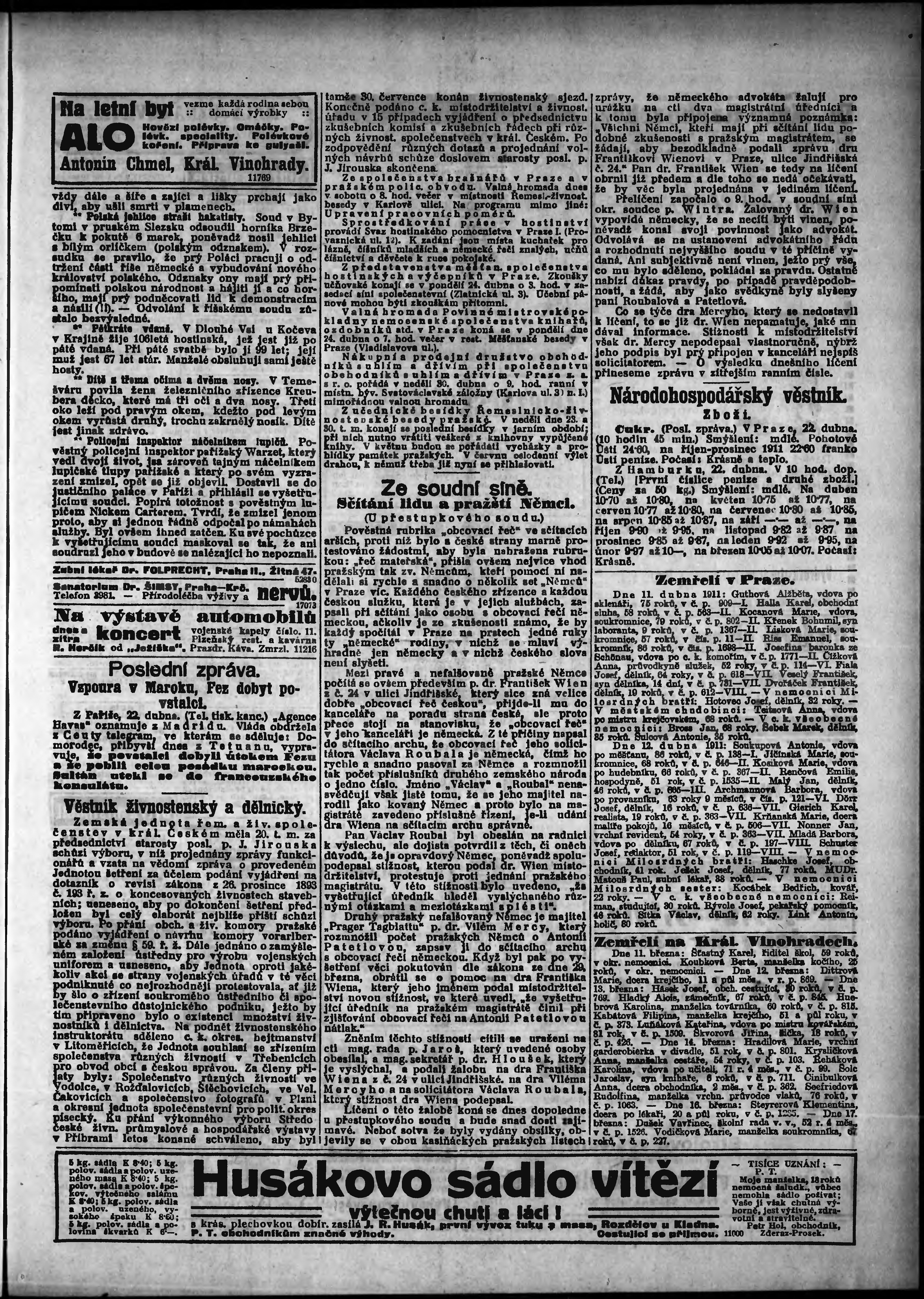 * Datum vydání výtisku: 22.4.1911 Číslo výtisku: 111 Poznámky k výtisku: odpolední vydání;