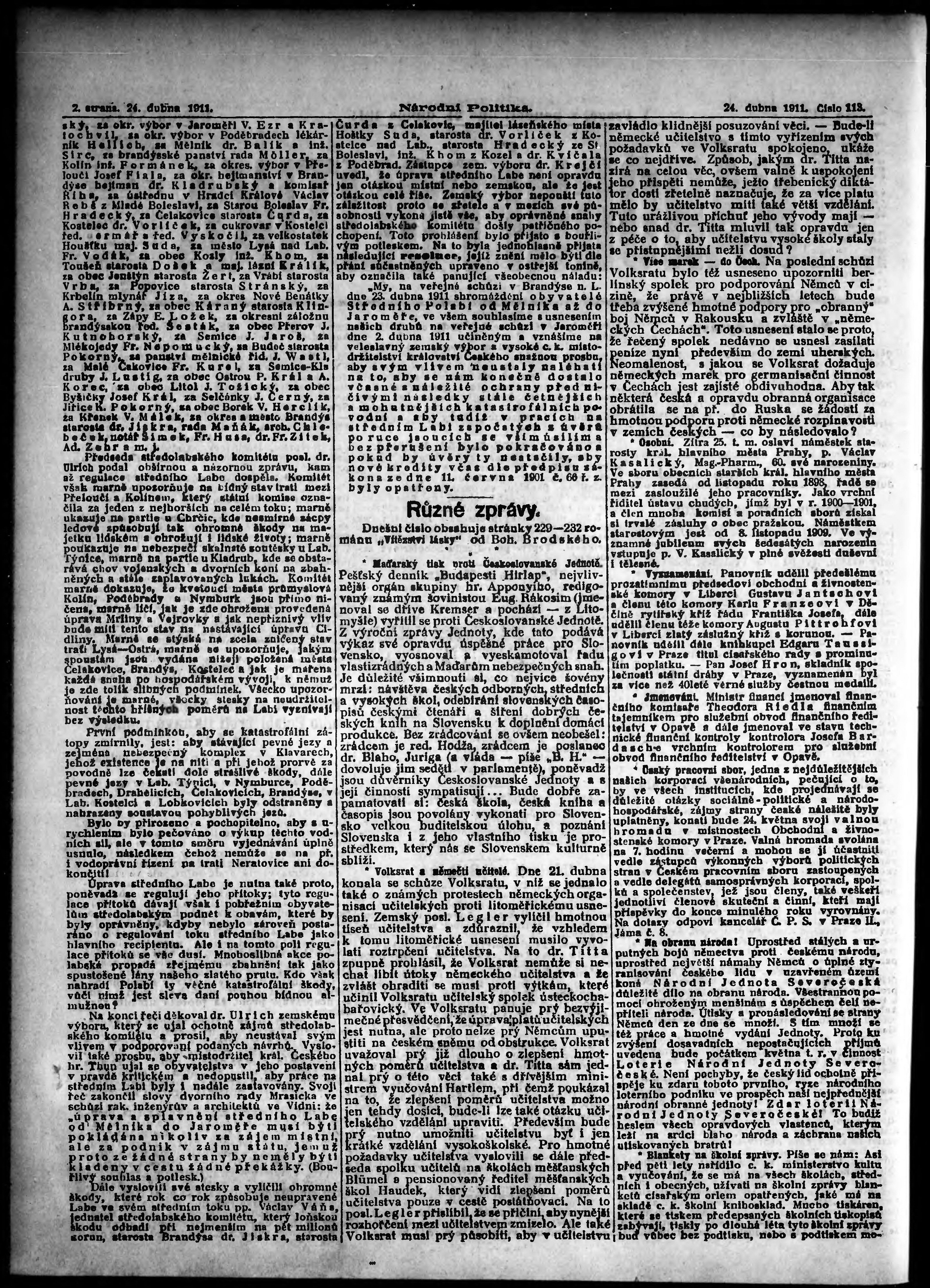 * Datum vydání výtisku: 24.4.1911 Číslo výtisku: 113 Poznámky k výtisku: ranní vydání;