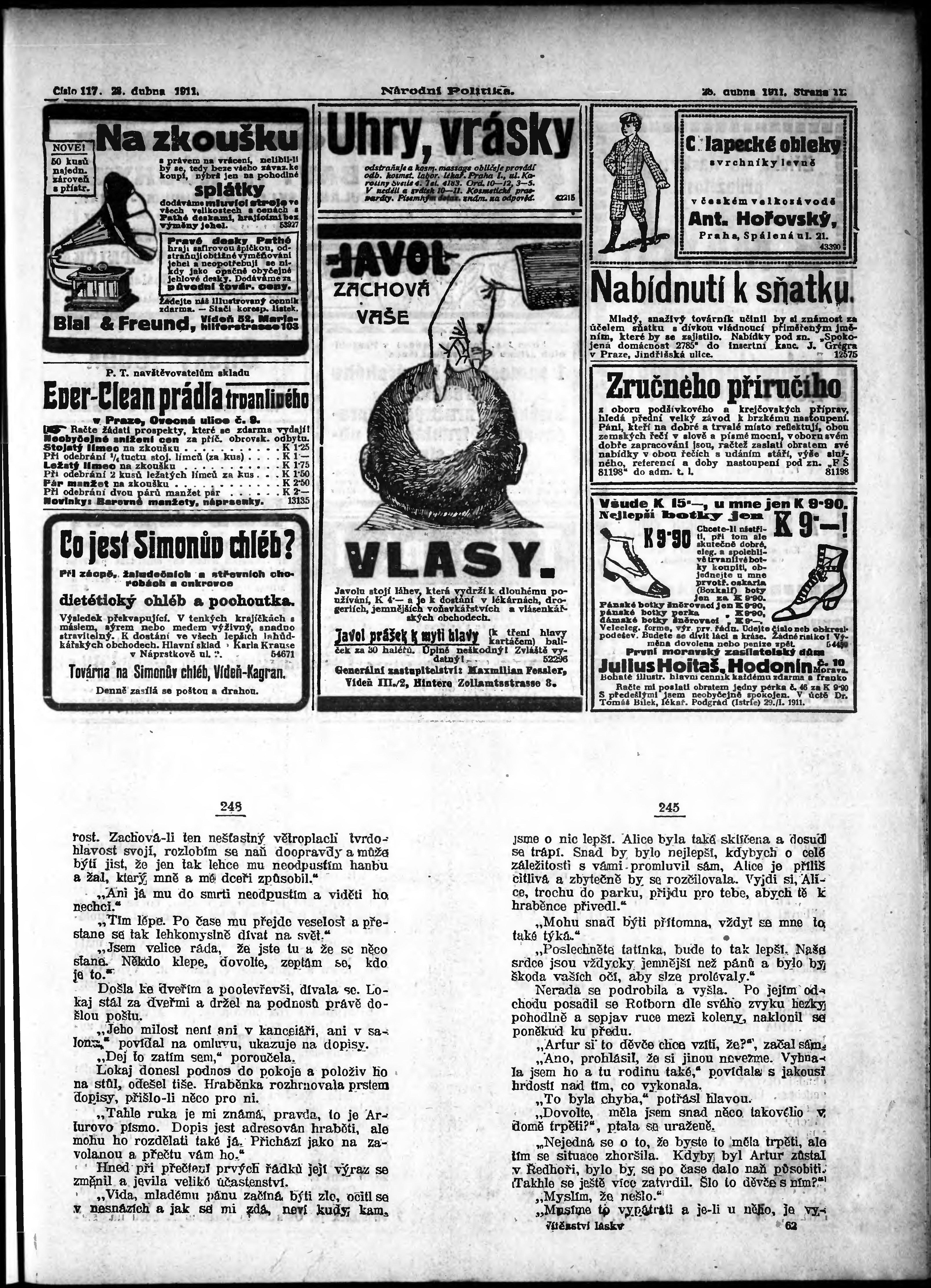 * Datum vydání výtisku: 28.4.1911 Číslo výtisku: 117 Poznámky k výtisku: ranní vydání;