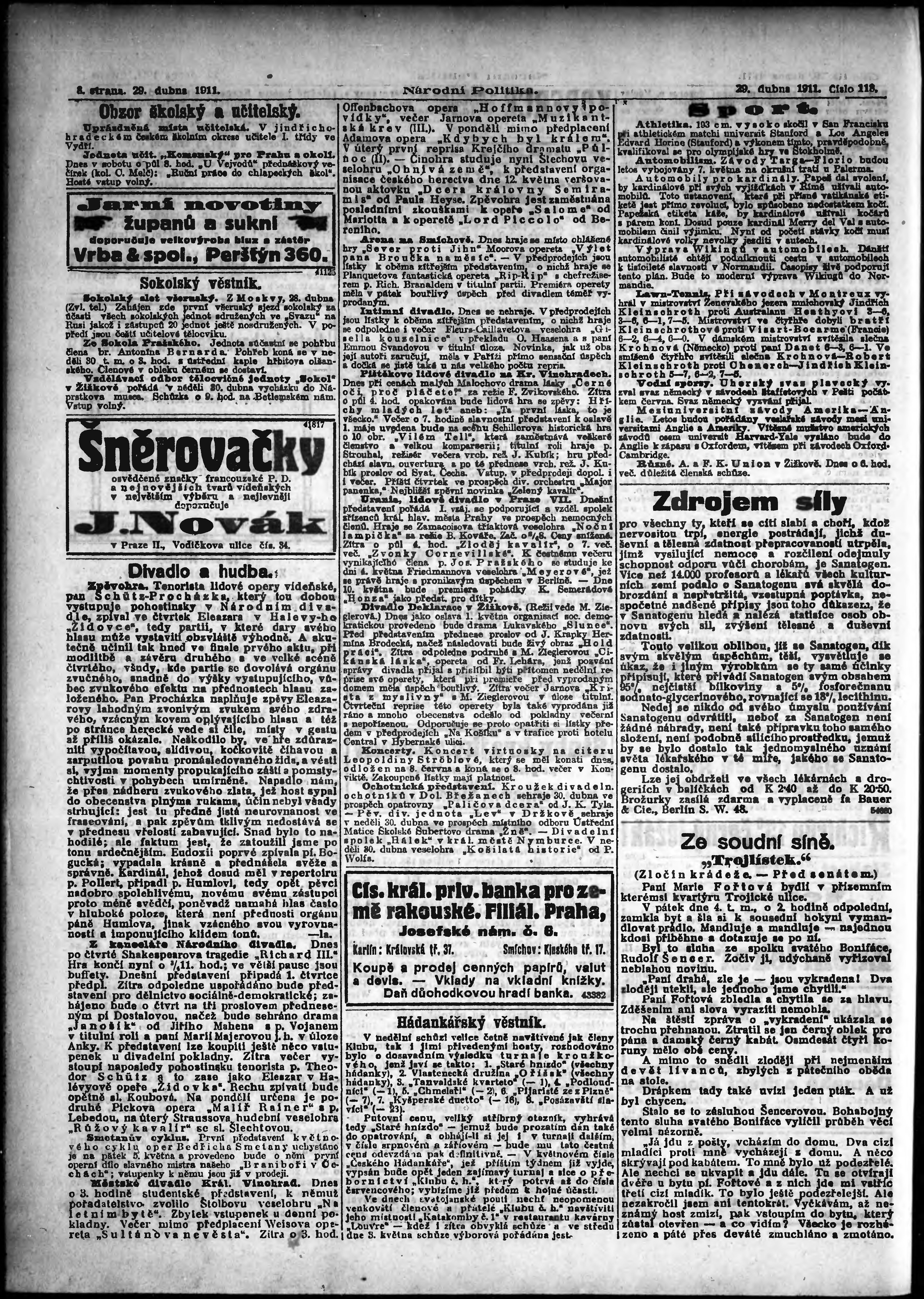 * Datum vydání výtisku: 29.4.1911 Číslo výtisku: 118 Poznámky k výtisku: ranní vydání;