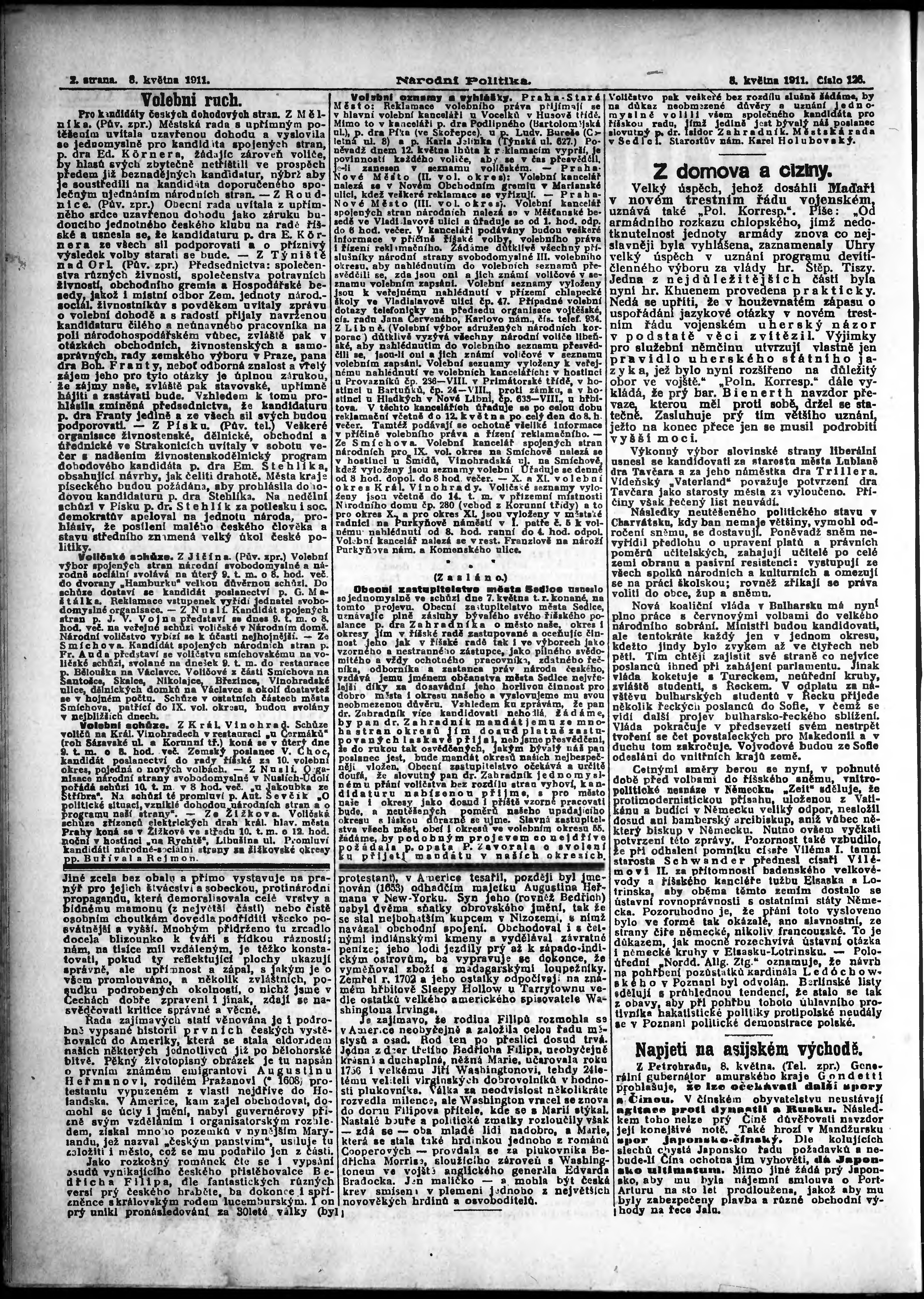 * Datum vydání výtisku: 9.5.1911 Číslo výtisku: 127 Poznámky k výtisku: ranní vydání; s. 11 - 12 není k dispozici;