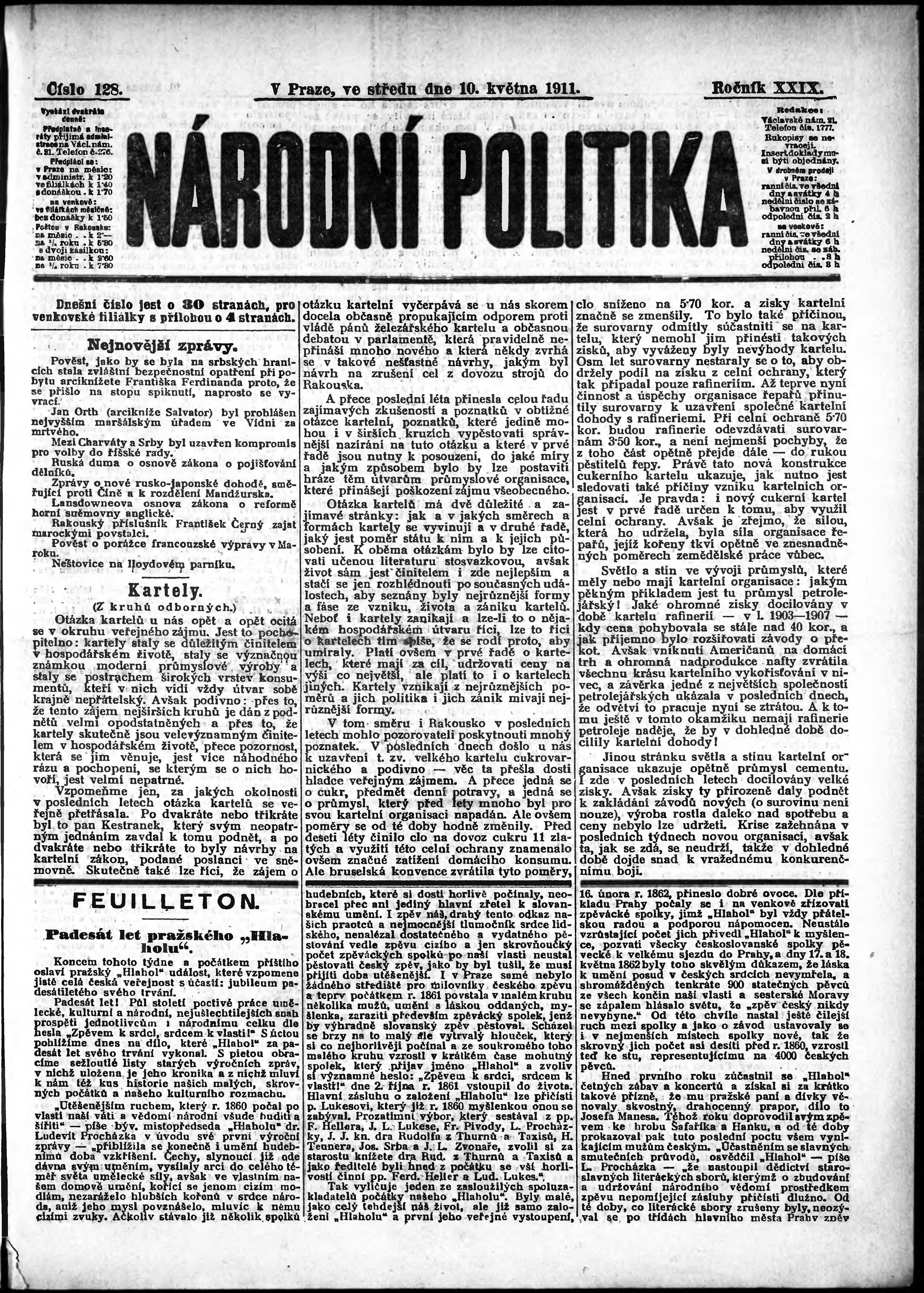 * Datum vydání výtisku: 10.5.1911 Číslo výtisku: 128 Poznámky k výtisku: ranní vydání;