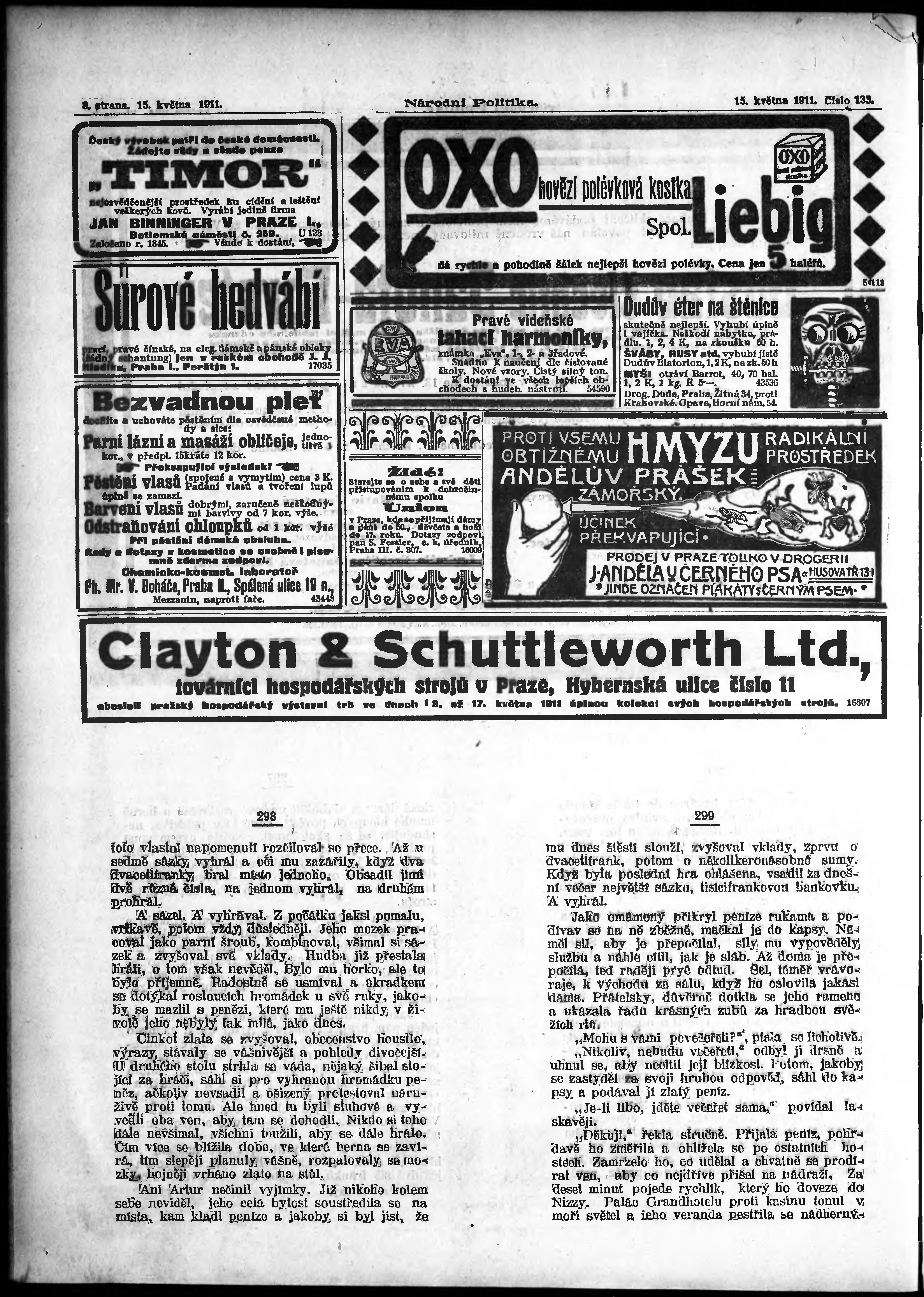 * Datum vydání výtisku: 15.5.1911 Číslo výtisku: 133 Poznámky k výtisku: ranní vydání;