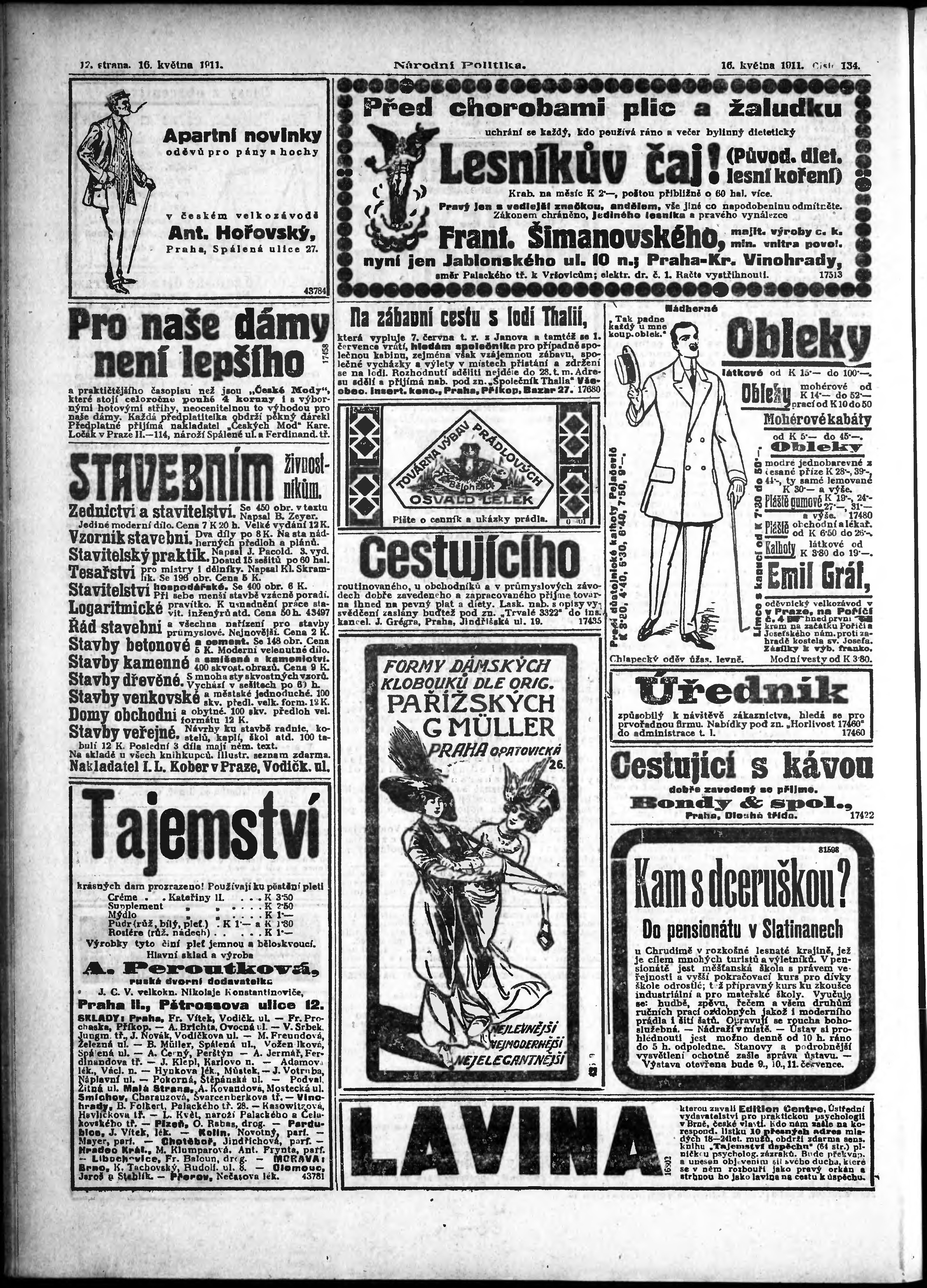 * Datum vydání výtisku: 16.5.1911 Číslo výtisku: 134 Poznámky k výtisku: ranní vydání;