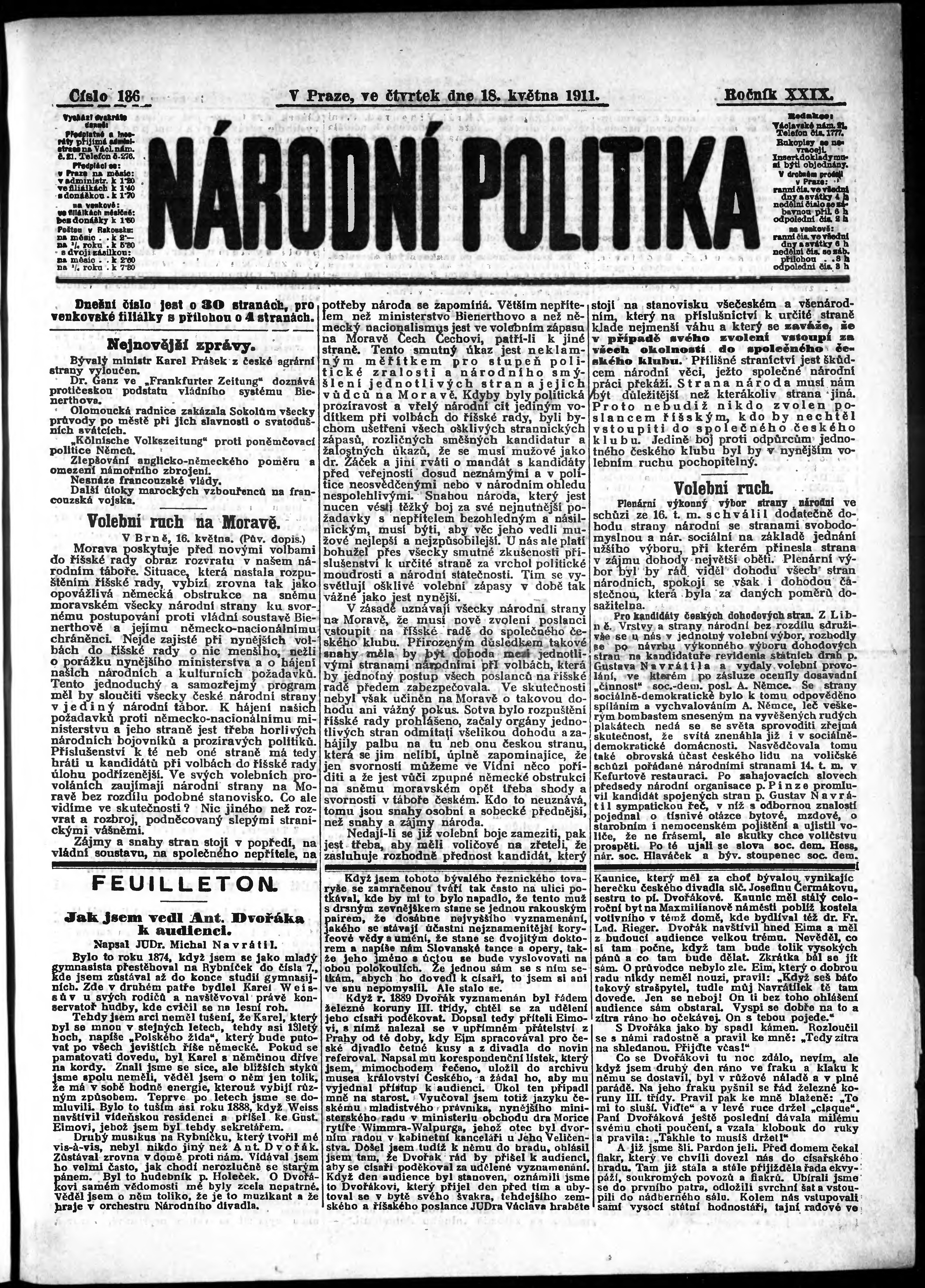 * Datum vydání výtisku: 18.5.1911 Číslo výtisku: 136 Poznámky k výtisku: ranní vydání;